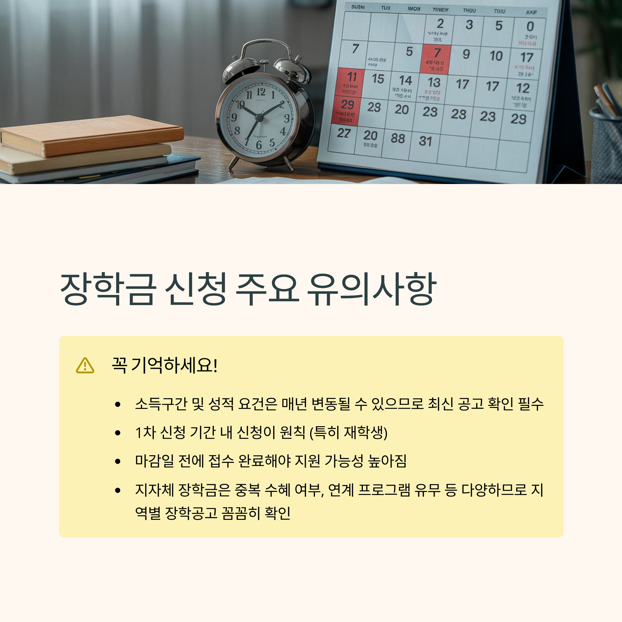 • 지자체 장학금은 중복 수혜 여부, 연계 프로그램 유무 등 다양하므로, 지역별 장학공고를 꼼꼼히 확인하세요.