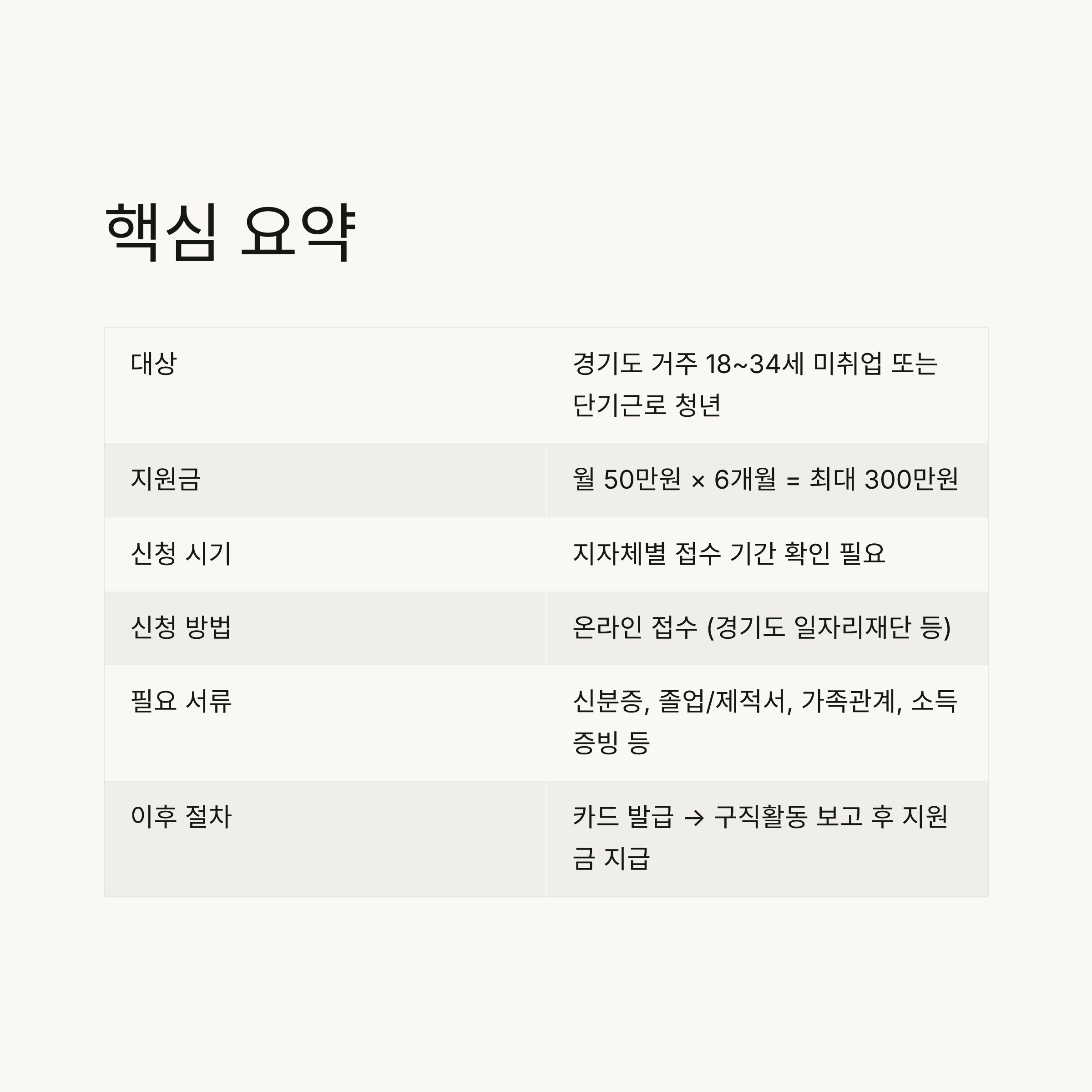 | 대상 | 경기도 거주 18~34세 미취업 또는 단기근로 청년 |