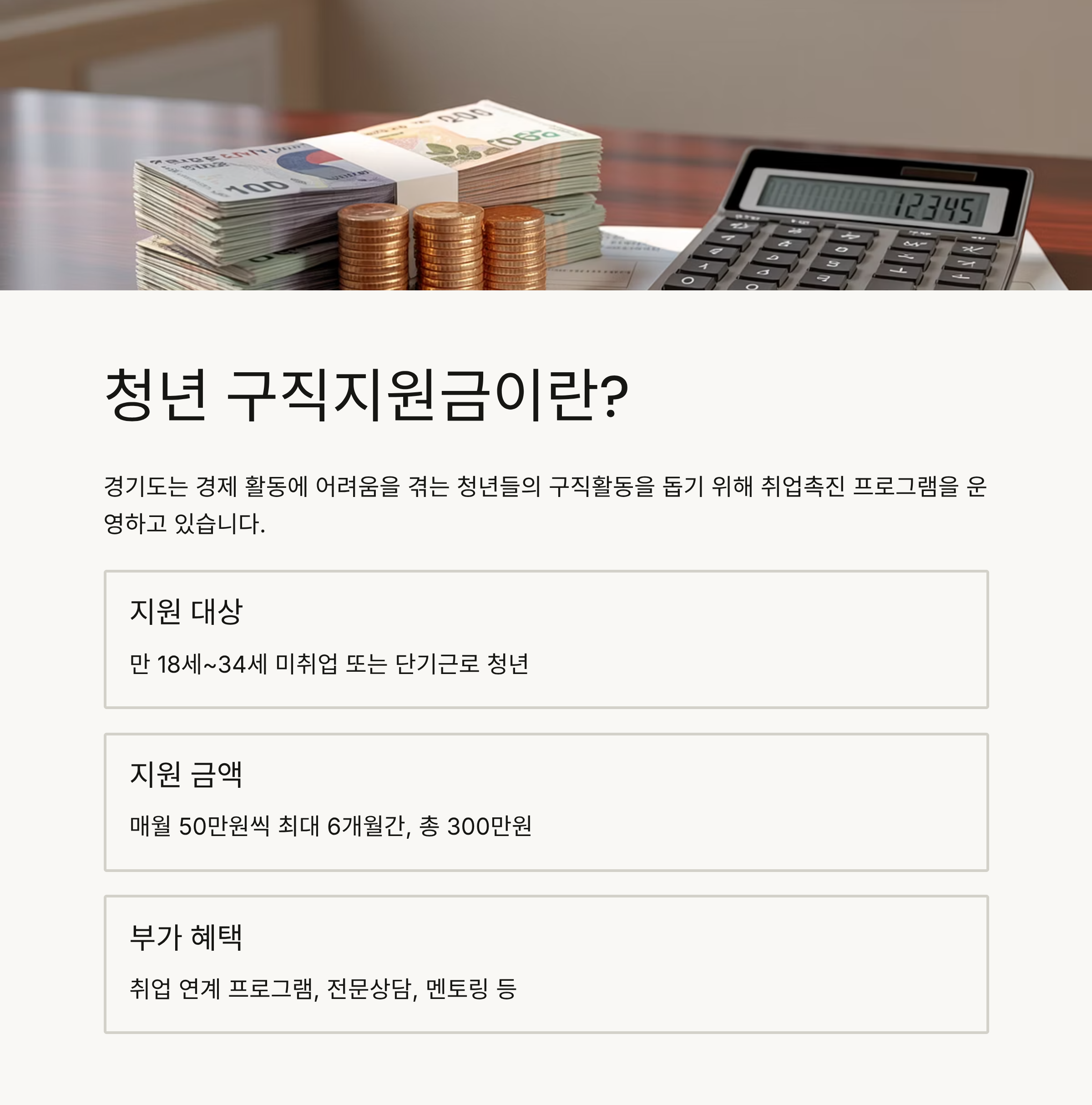 경기도 청년구직지원금 받는 법 – 최대 300만 원, 월 50만 원 × 6개월