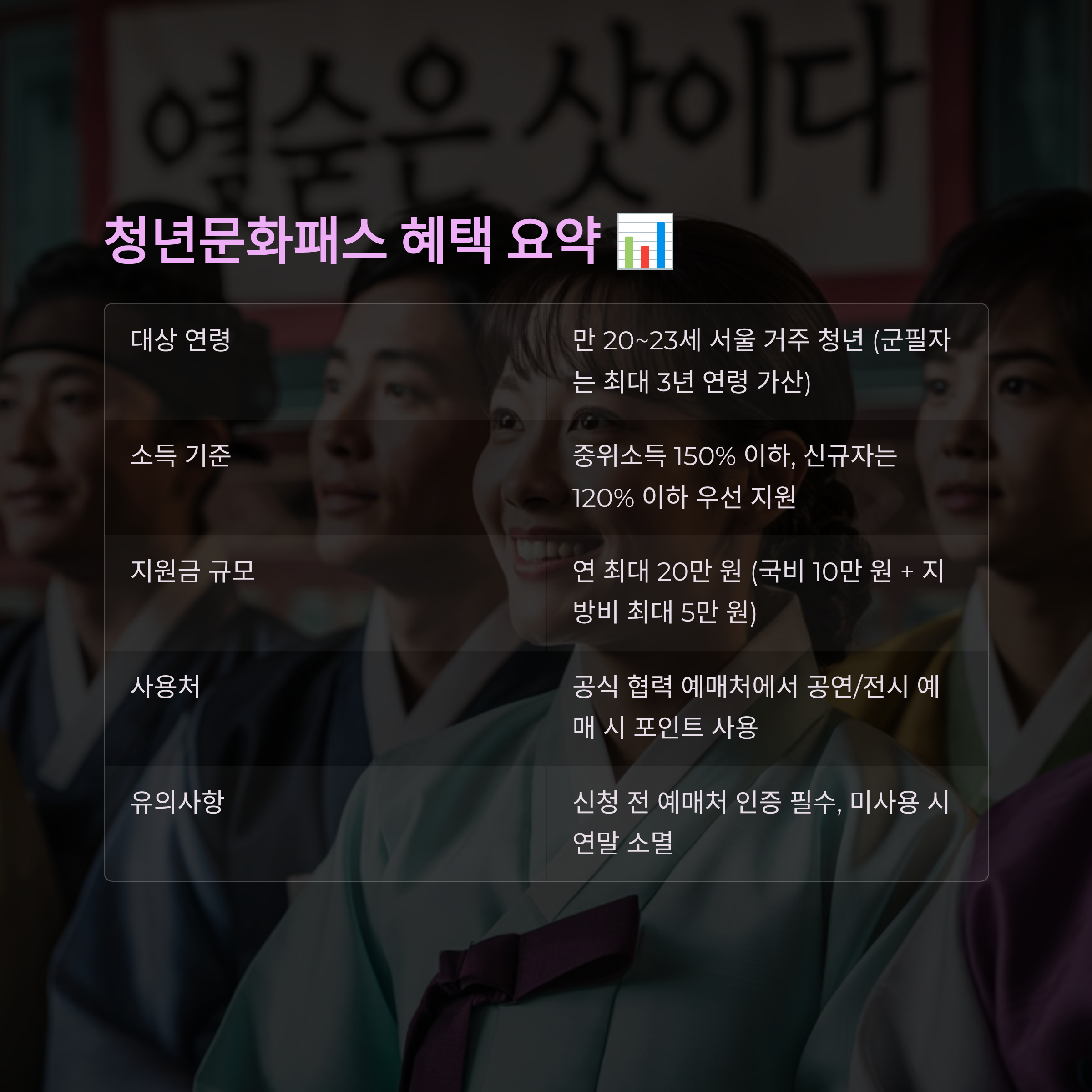 📌 청년문화패스 혜택 정리 – 서울 거주 청년이라면 놓치지 말자!