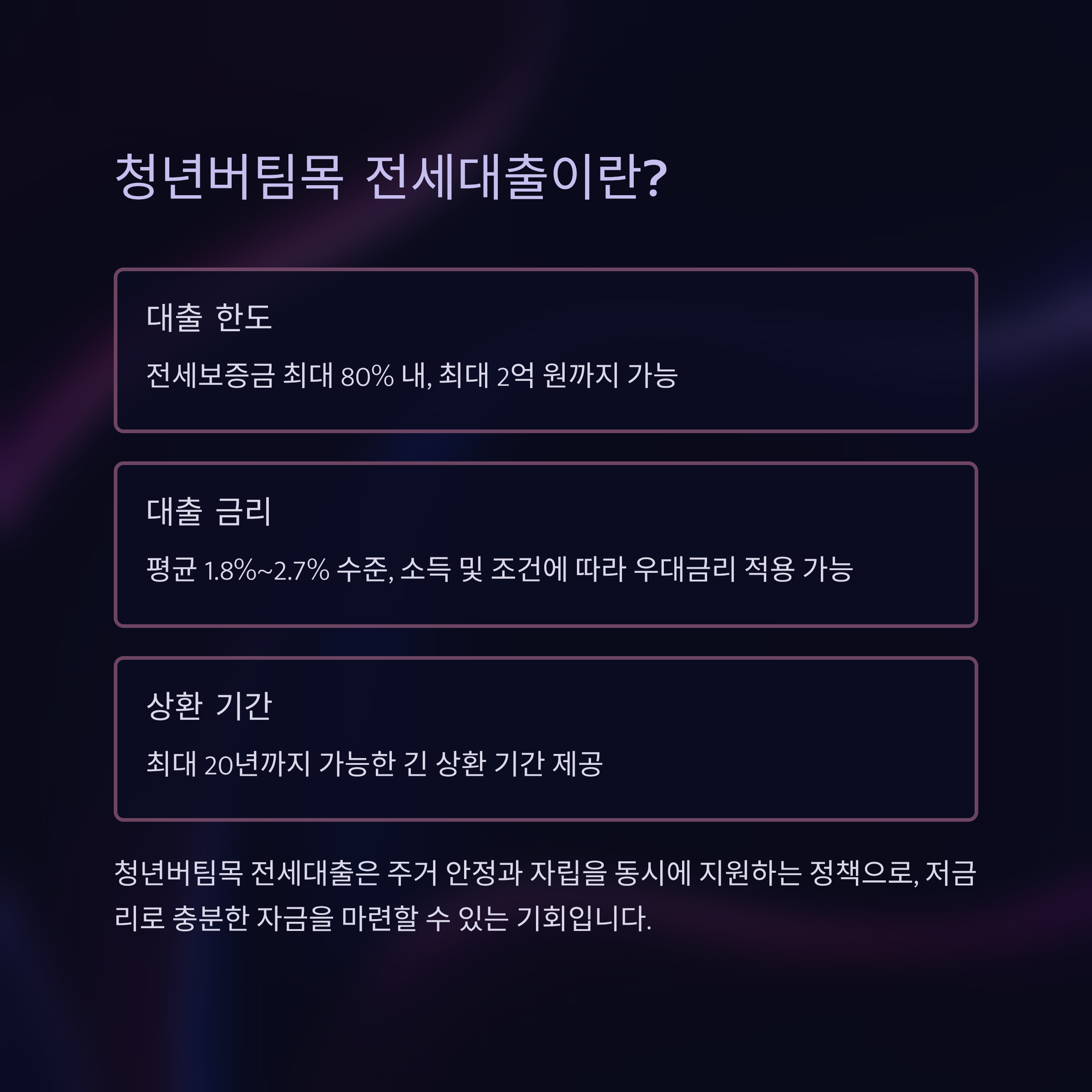 | 대출 한도 | 전세보증금 최대 80% 내, 최대 2억 원 |