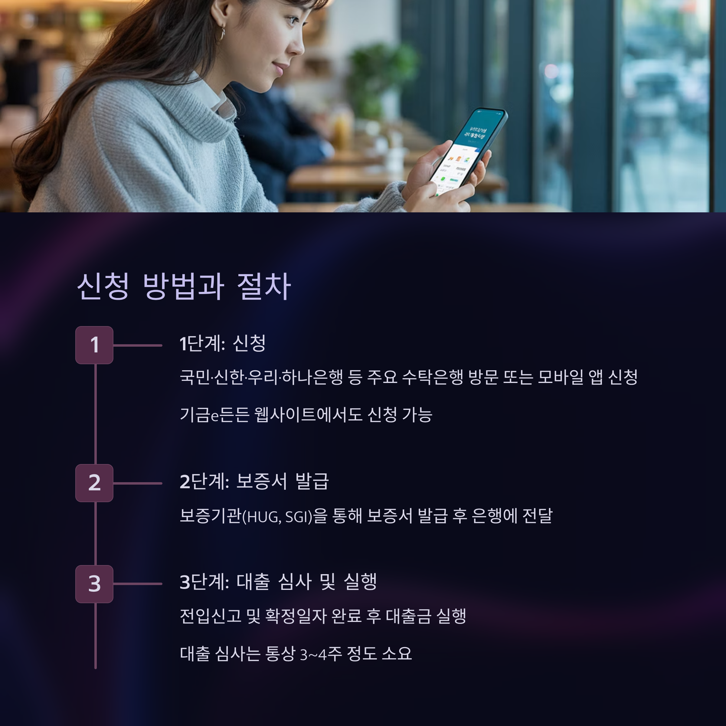 - 보증금 조건: 수도권 3억 이하, 최대 대출한도는 2억 원 (보증금의 80%)