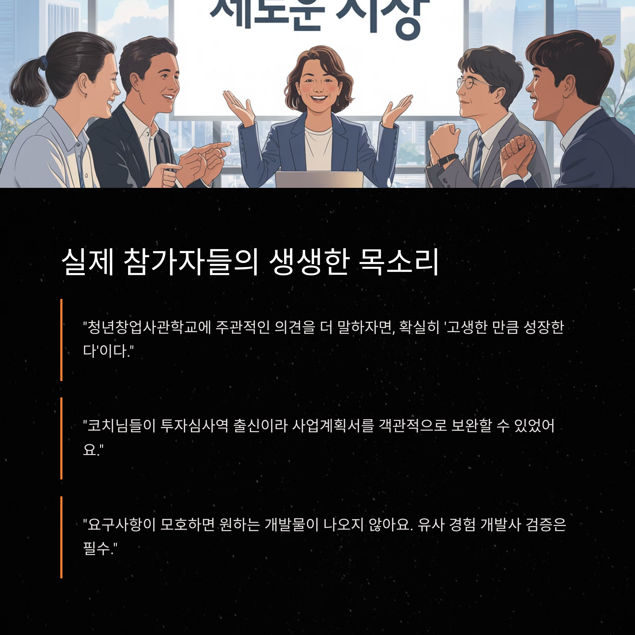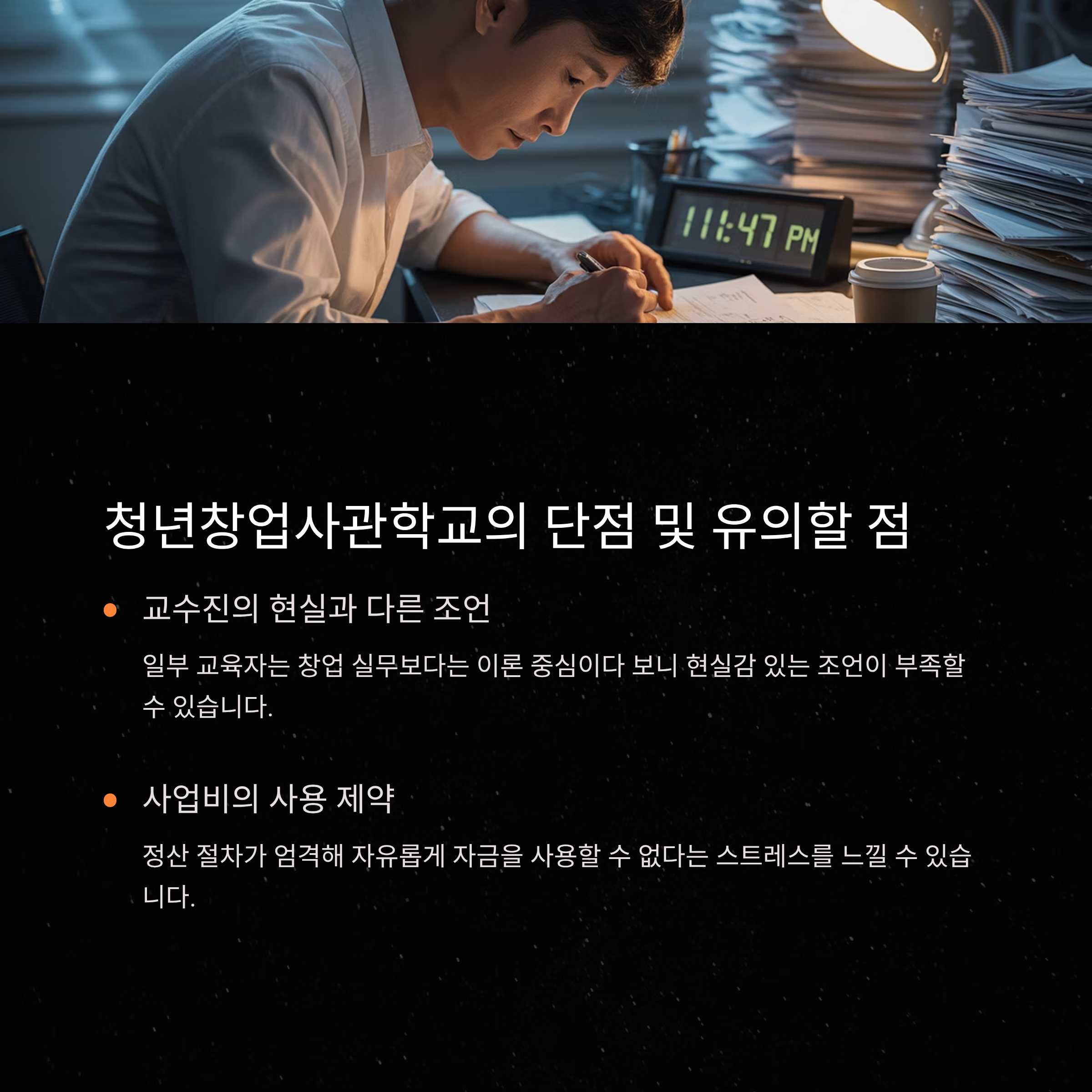 - 교수진의 현실과 다른 조언: 일부 교육자는 창업 실무보다는 이론 중심이다 보니 현실감 있는 조언이 부족할 수 있습니다.([turn0search8])