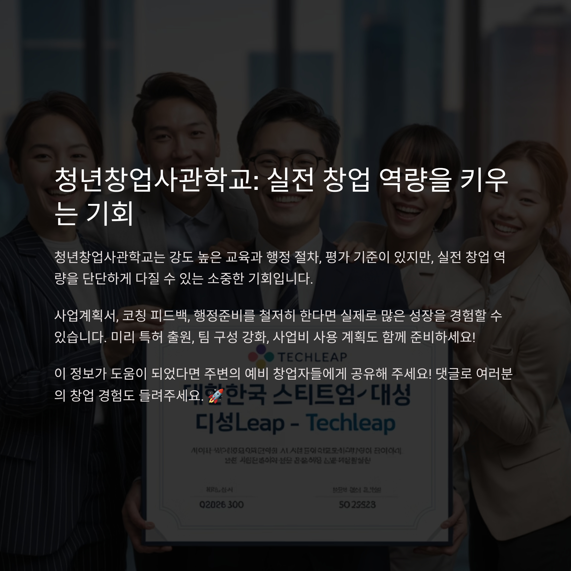 결론적으로, 청년창업사관학교는 실전 창업 역량을 단단하게 다질 수 있는 기회입니다.