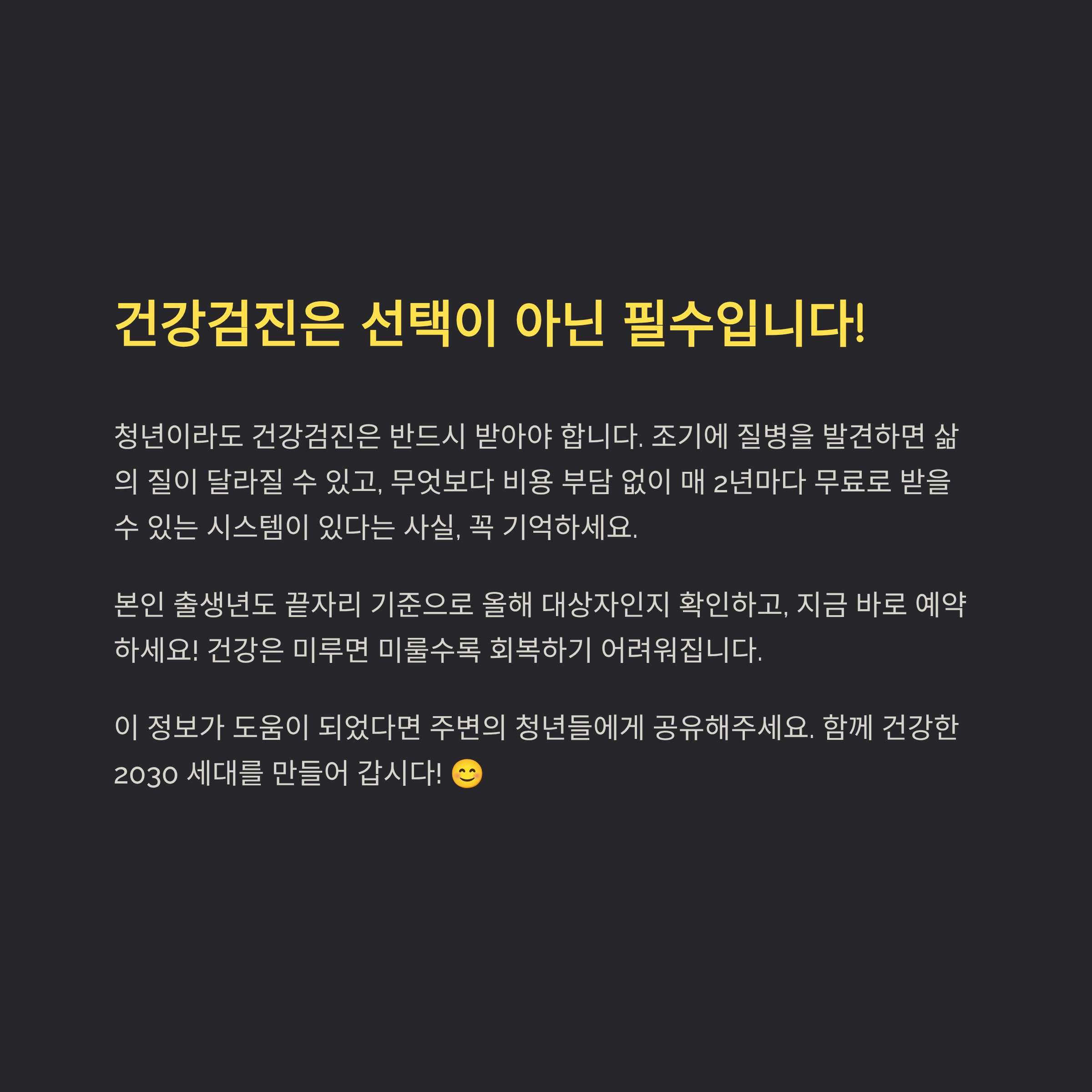 청년이라도 건강검진은 선택이 아닌 필수입니다!