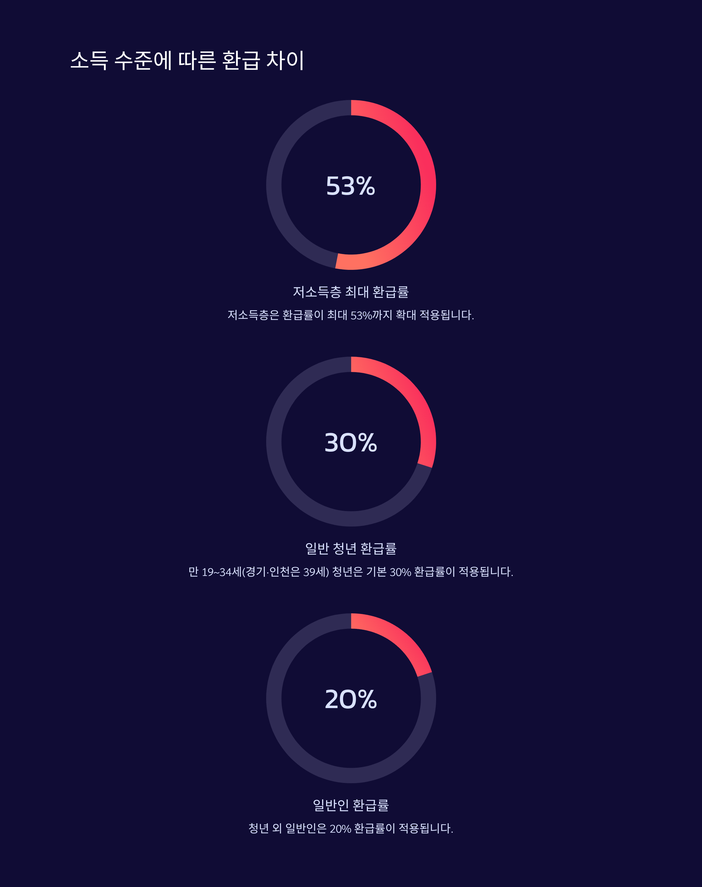 - 소득 수준에 따른 환급 차이: 저소득층은 환급률이 최대 53%까지 확대 적용됩니다.([turn0search3][turn0search7])
