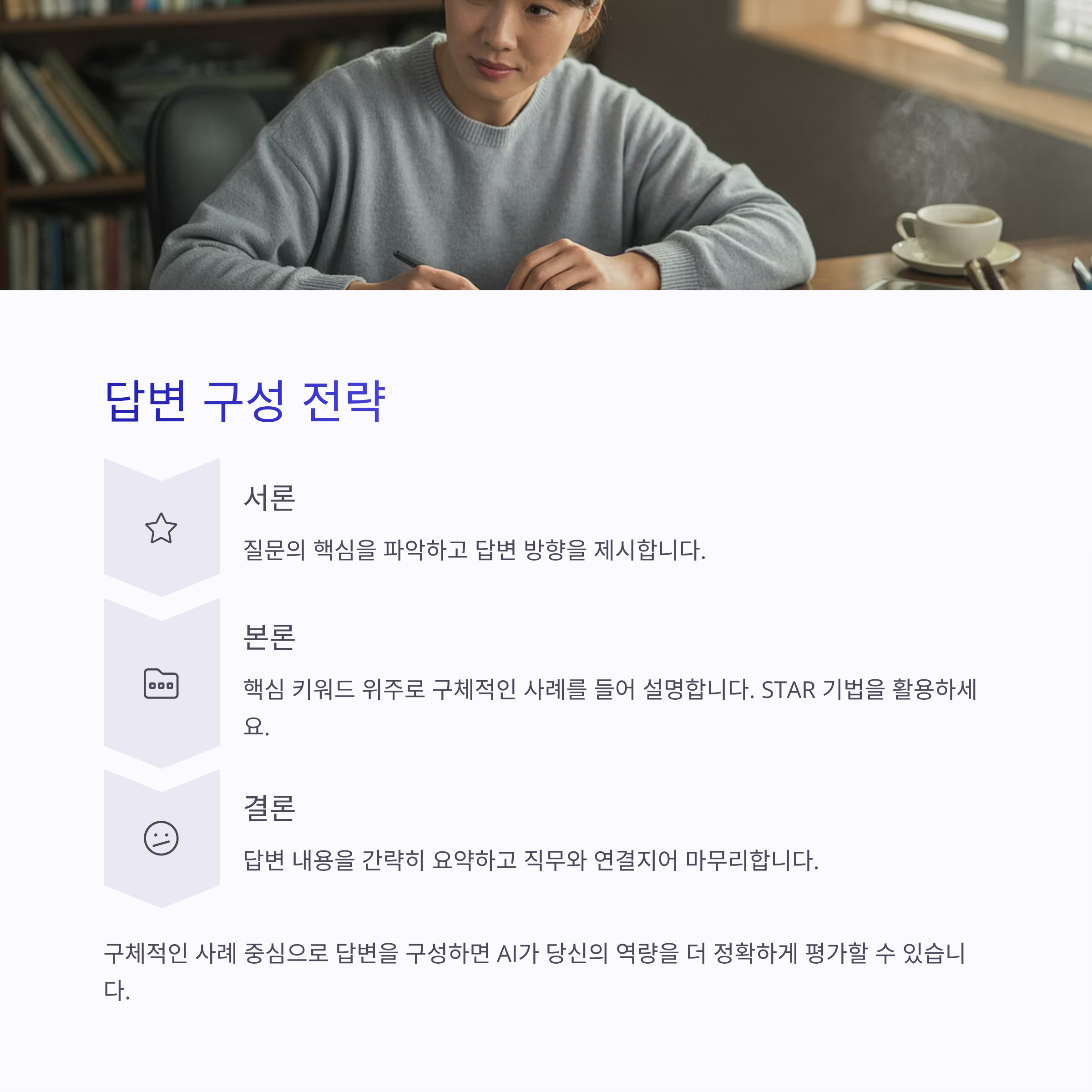 답변 구성 STAR 구조, 핵심 키워드 중심, 구체 사례 필수