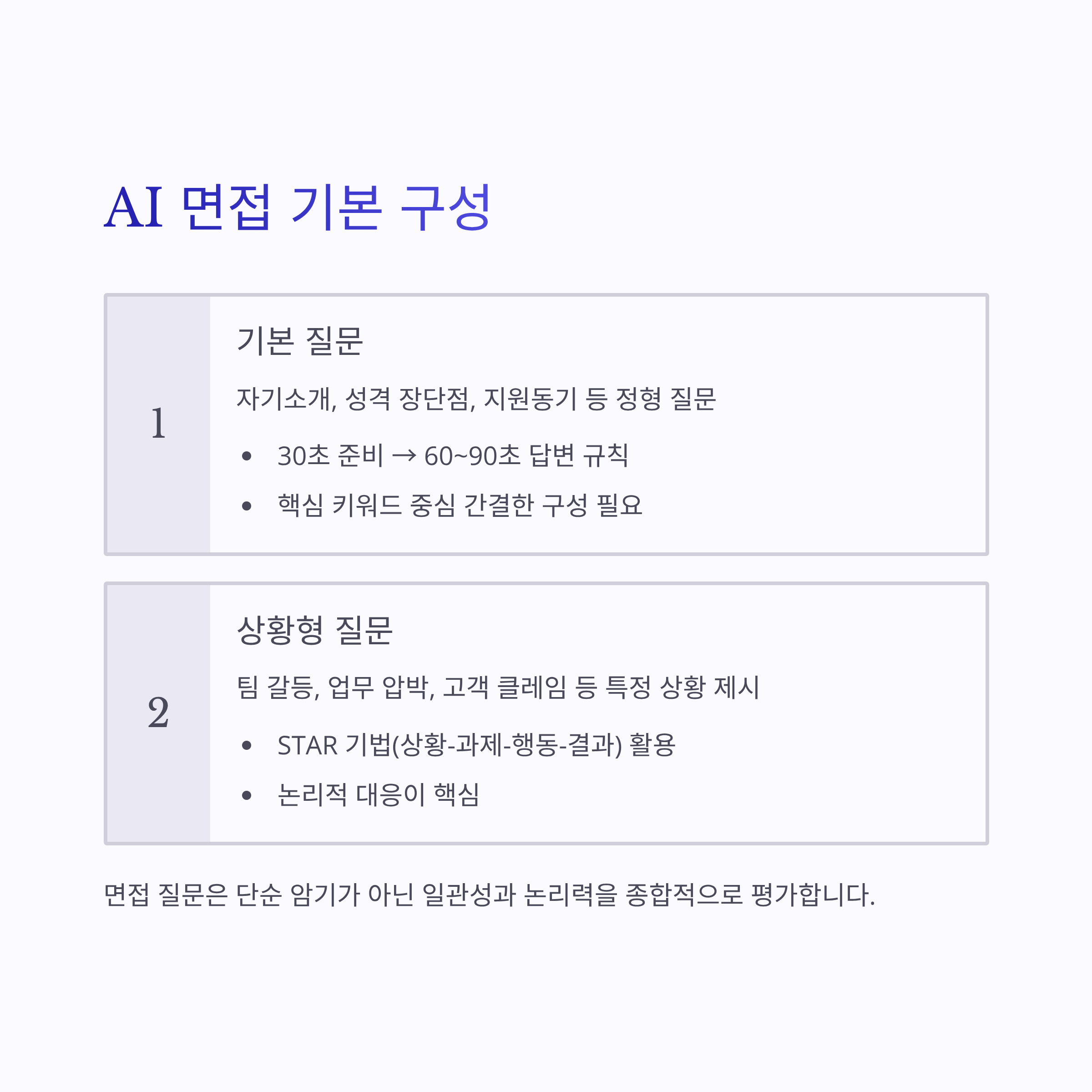 | 답변 구성 | STAR 구조, 핵심 키워드 중심, 구체 사례 필수 |
