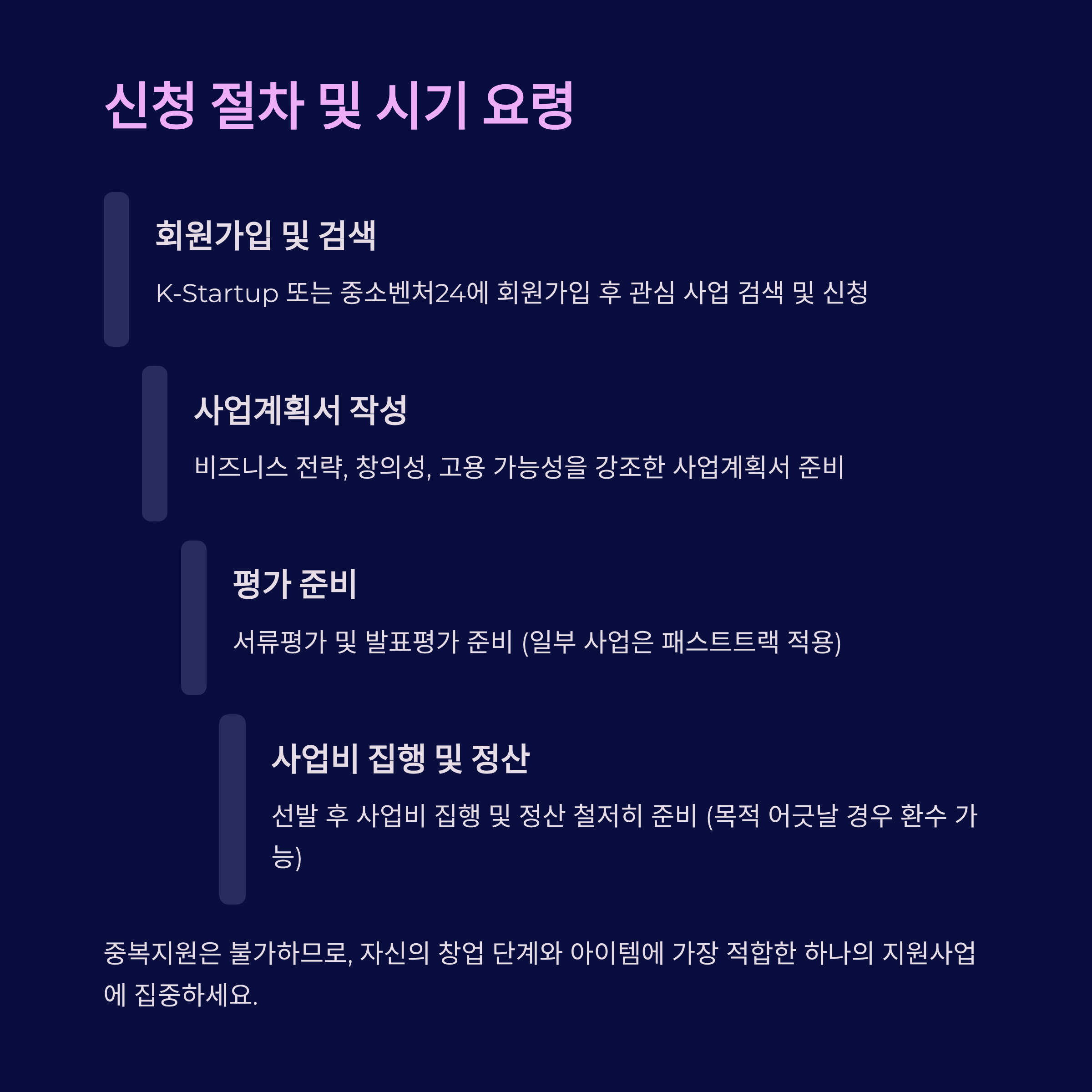 - 중복지원 불가하므로, 하나의 지원사업에 집중 선택