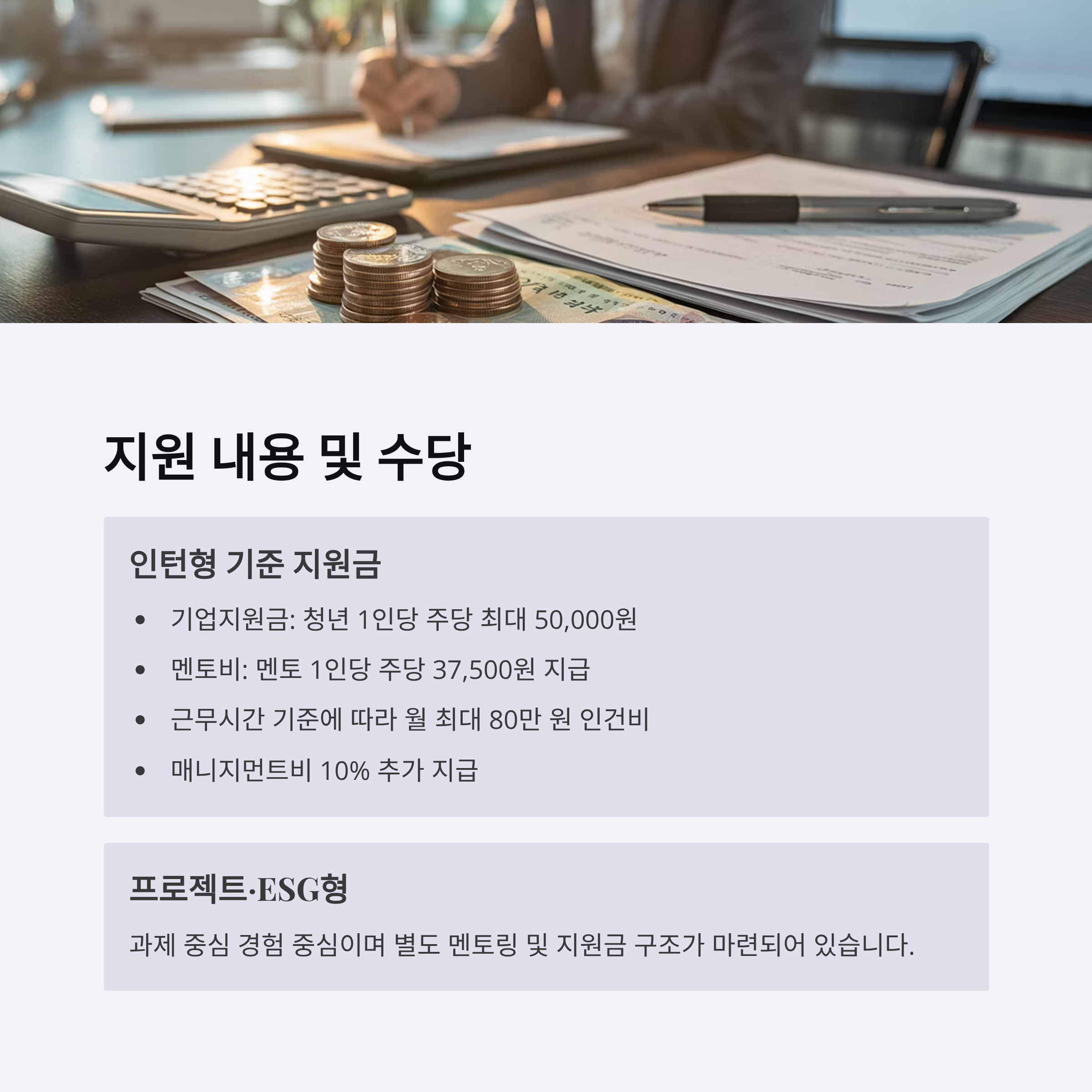 - 기업지원금: 청년 1인당 주당 최대 50,000원