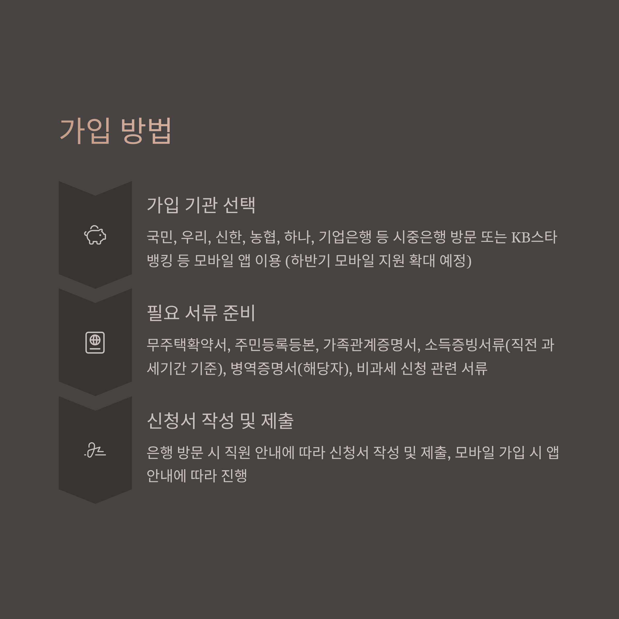 - 유의사항: 중도해지·소득 초과 시 혜택 소멸, 전환 시 납입 인정 방식 주의