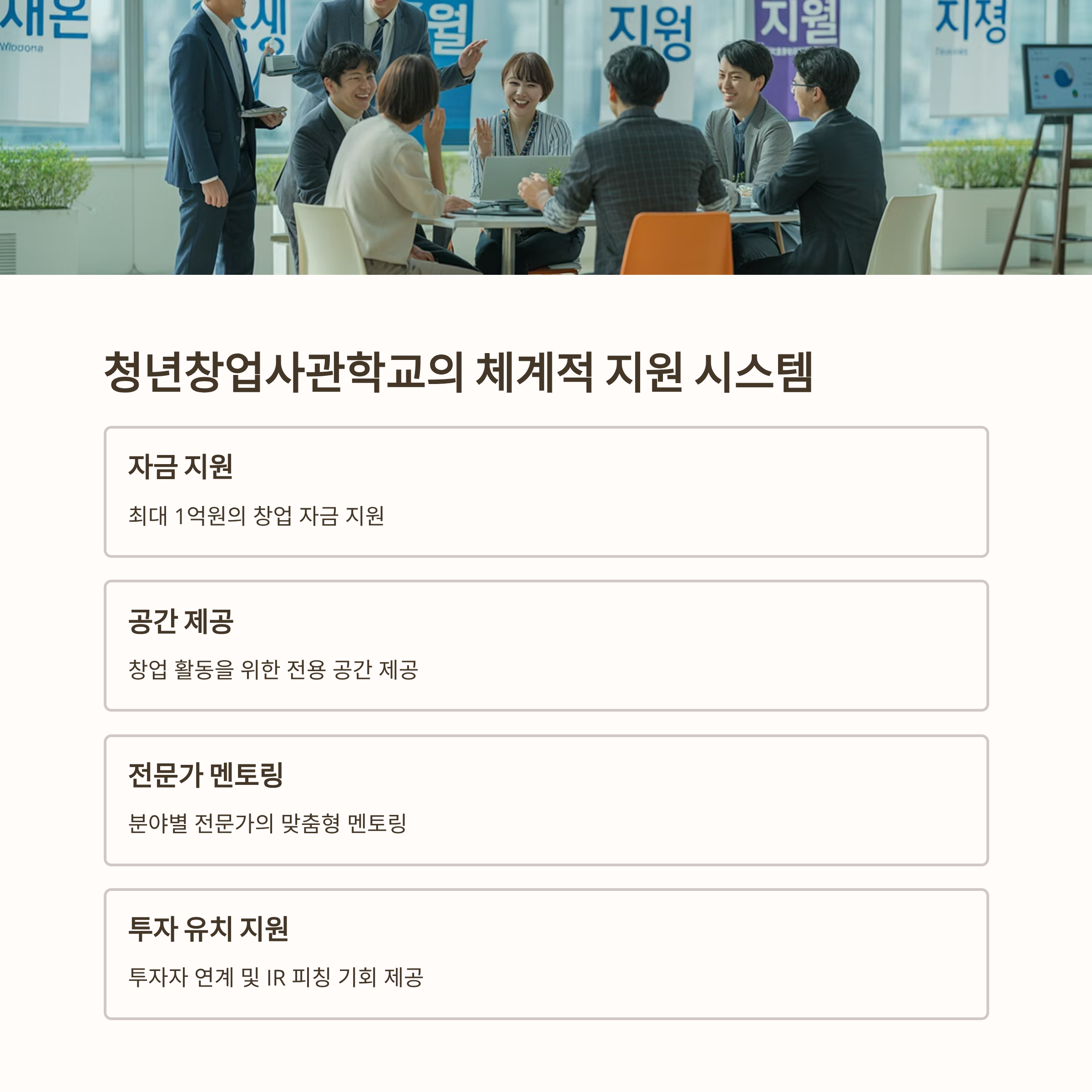 | 청년창업사관학교 출신 기업들 | 정부 지원 + 멘토링 + 체계적 육성 → 유니콘/상장기업 탄생 |