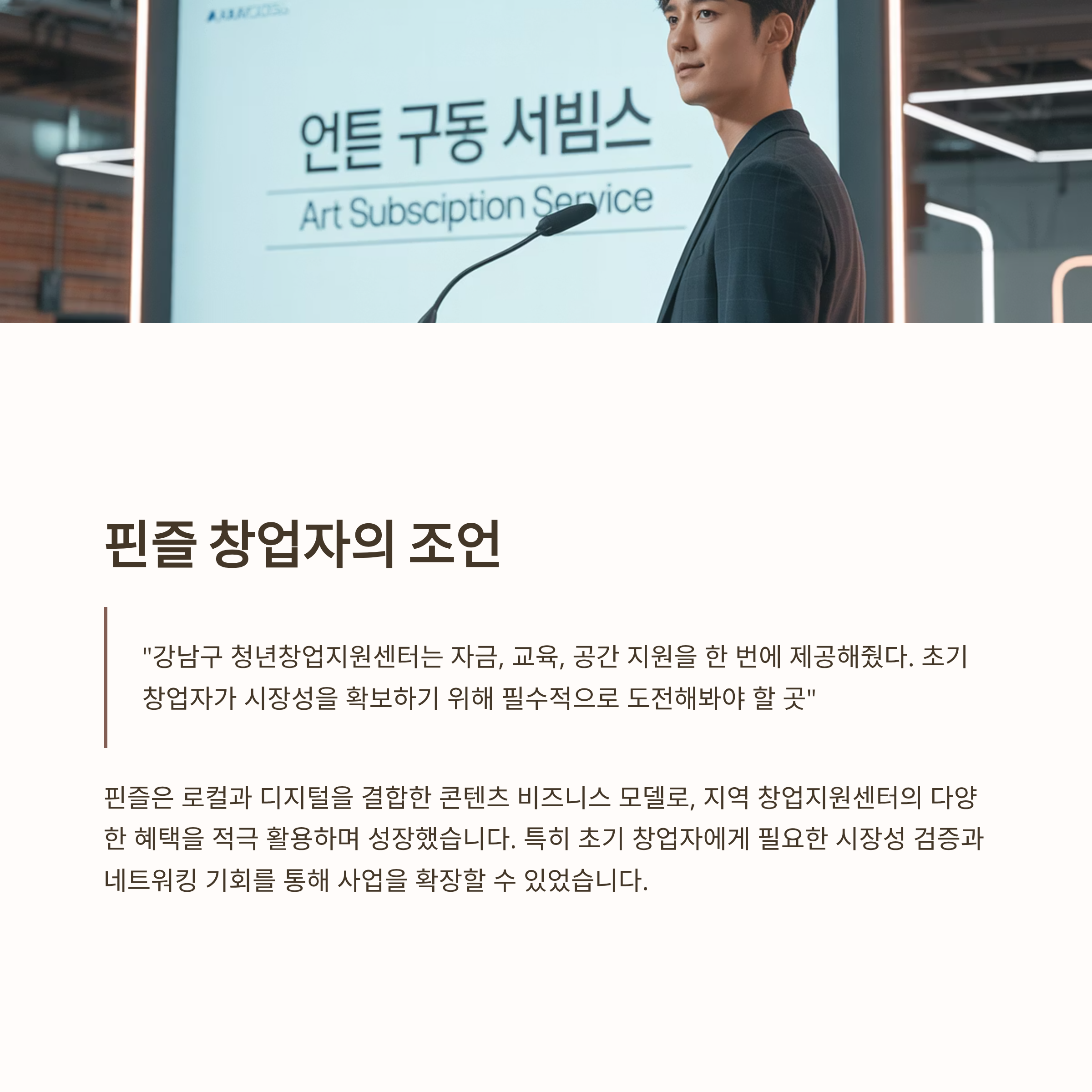 “강남구 청년창업지원센터는 자금, 교육, 공간 지원을 한 번에 제공해줬다. 초기 창업자가 시장성을 확보하기 위해 필수적으로 도전해봐야 할 곳”이라는 창업자의 조언은 깊은 인사이트가 됩니다 (강남구청).