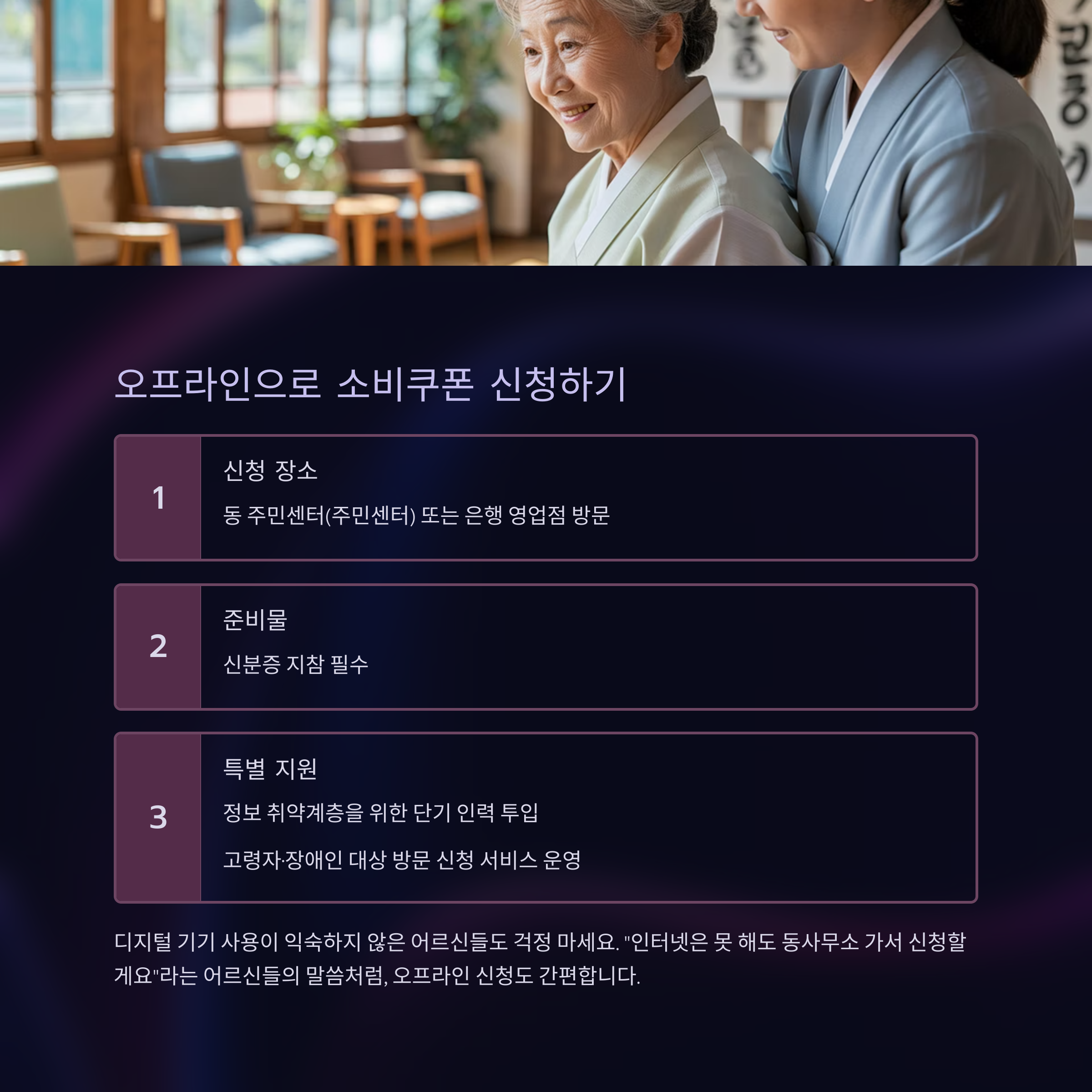 - 오프라인 – 동 주민센터·은행·방문 신청