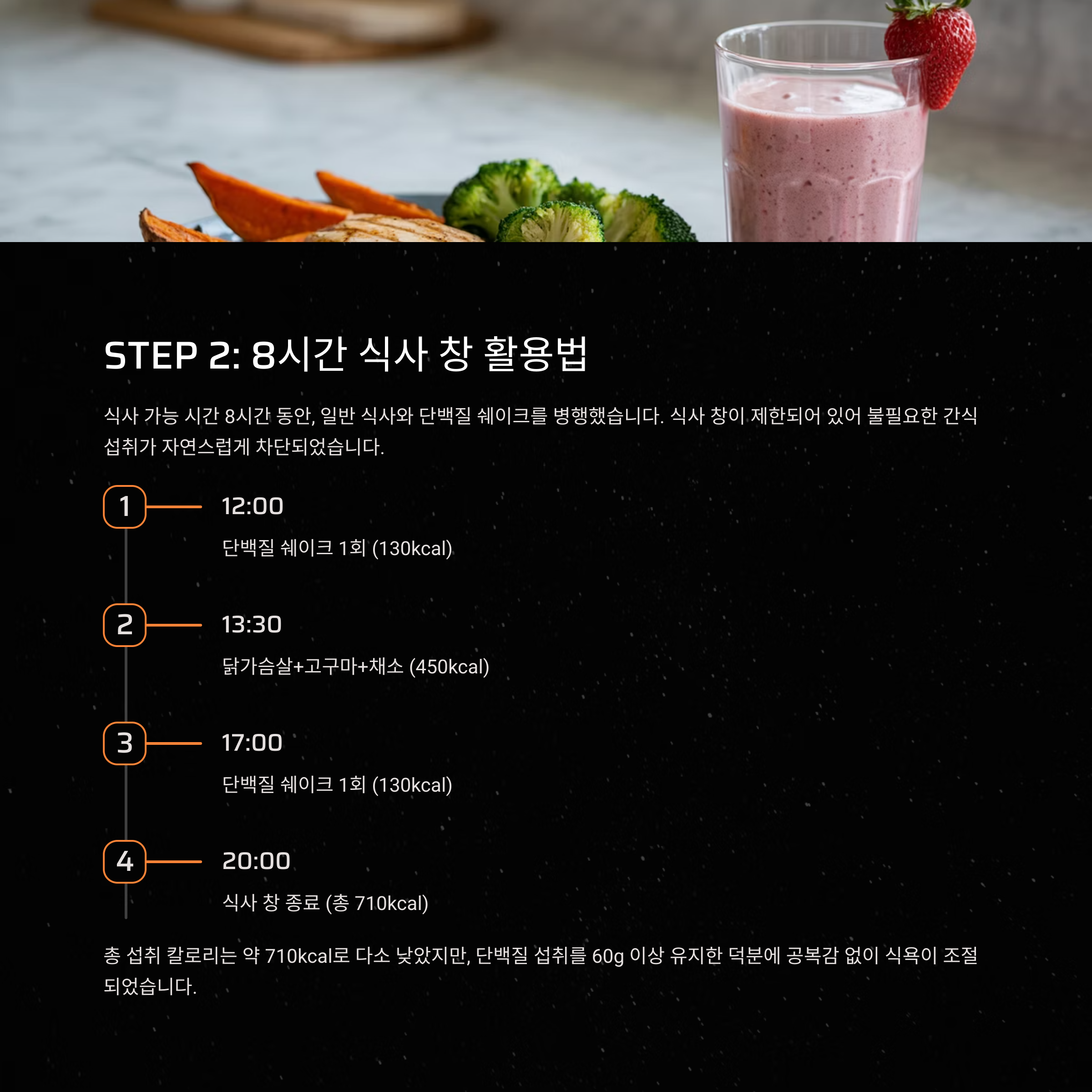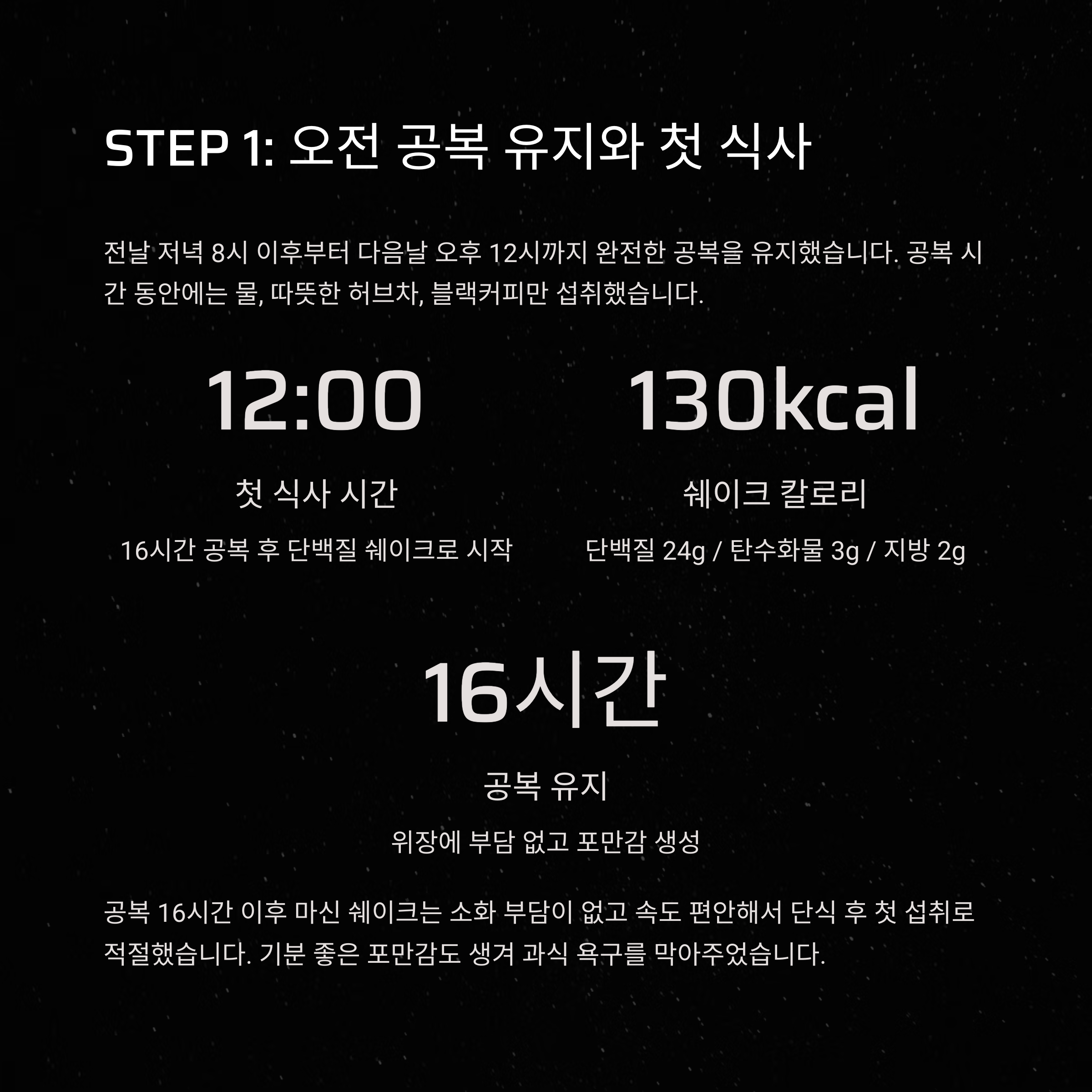 STEP 1. 오전 공복 16시간 유지, 단백질 쉐이크로 시작한 식사 창