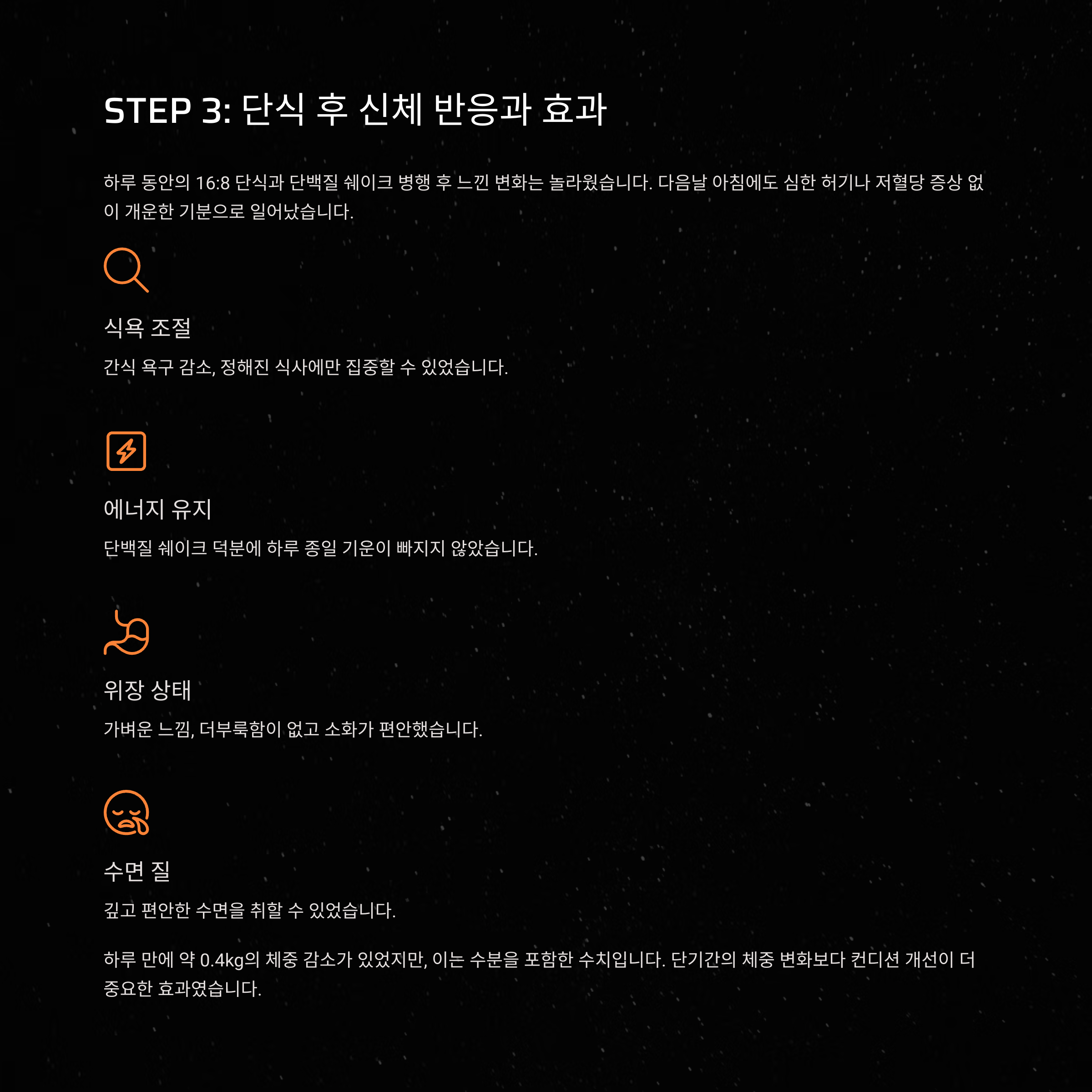 STEP 3. 단식 종료 후 느낀 신체 반응과 효과