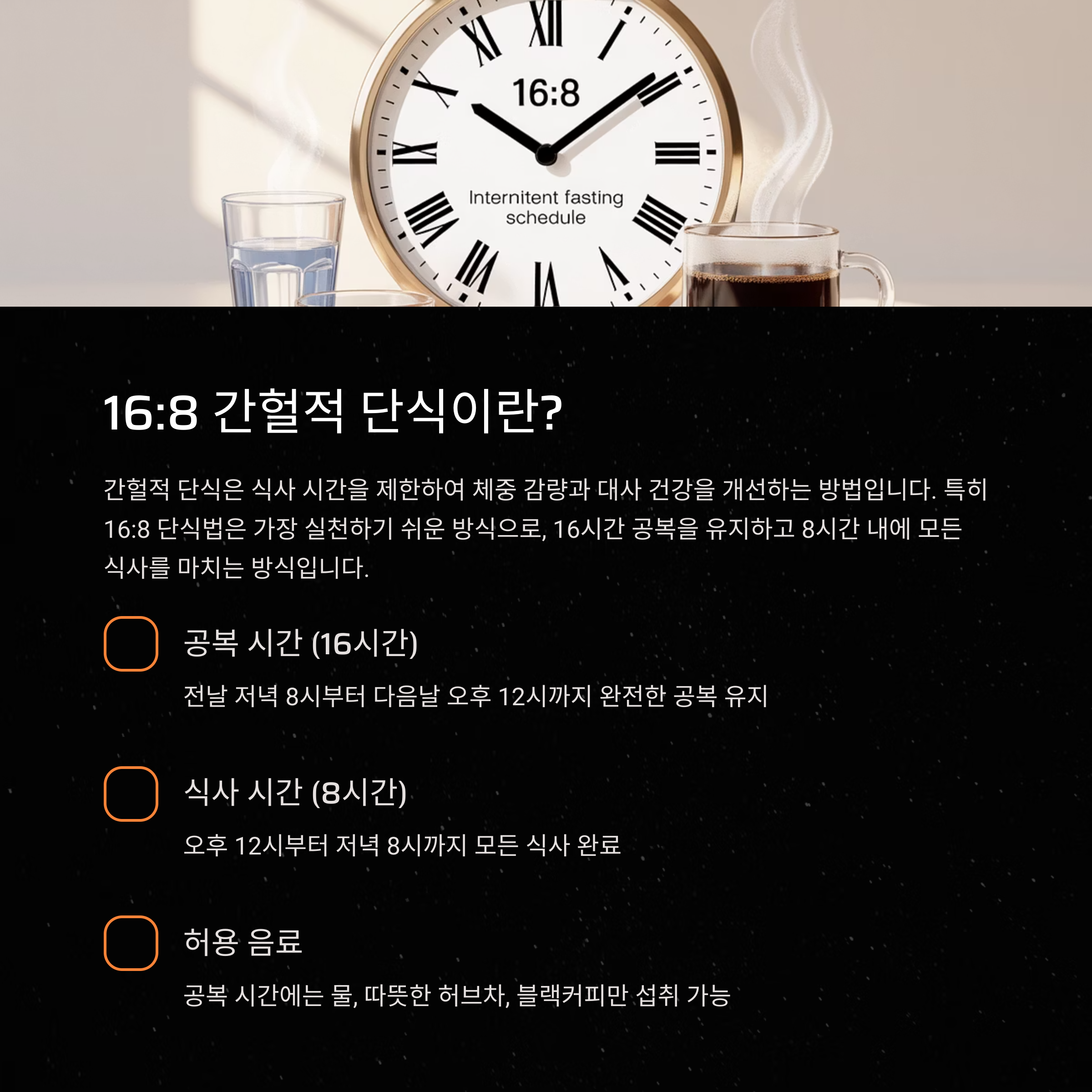 특히 16:8 단식법은 가장 실천하기 쉬운 방식으로,