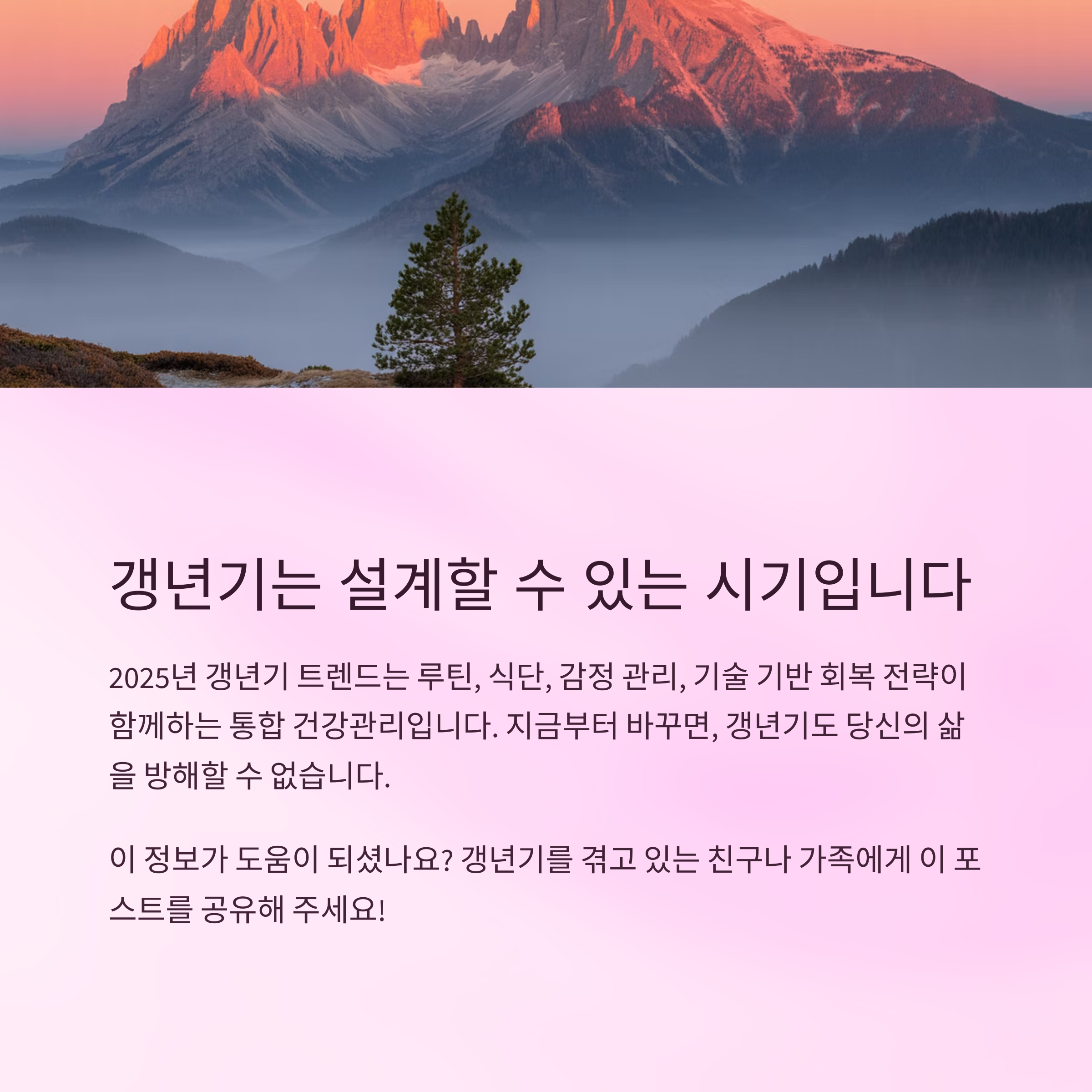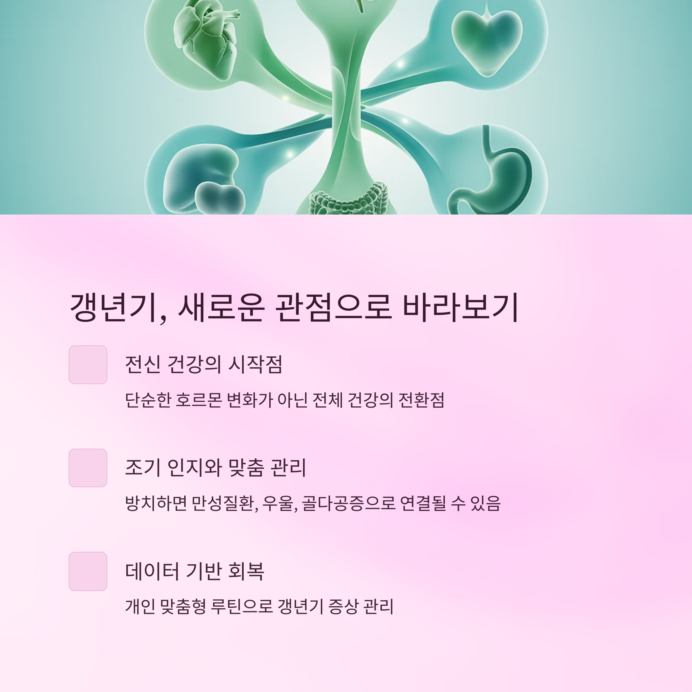 핵심 정리: 갱년기는 새로운 건강 설계가 필요한 전환점입니다