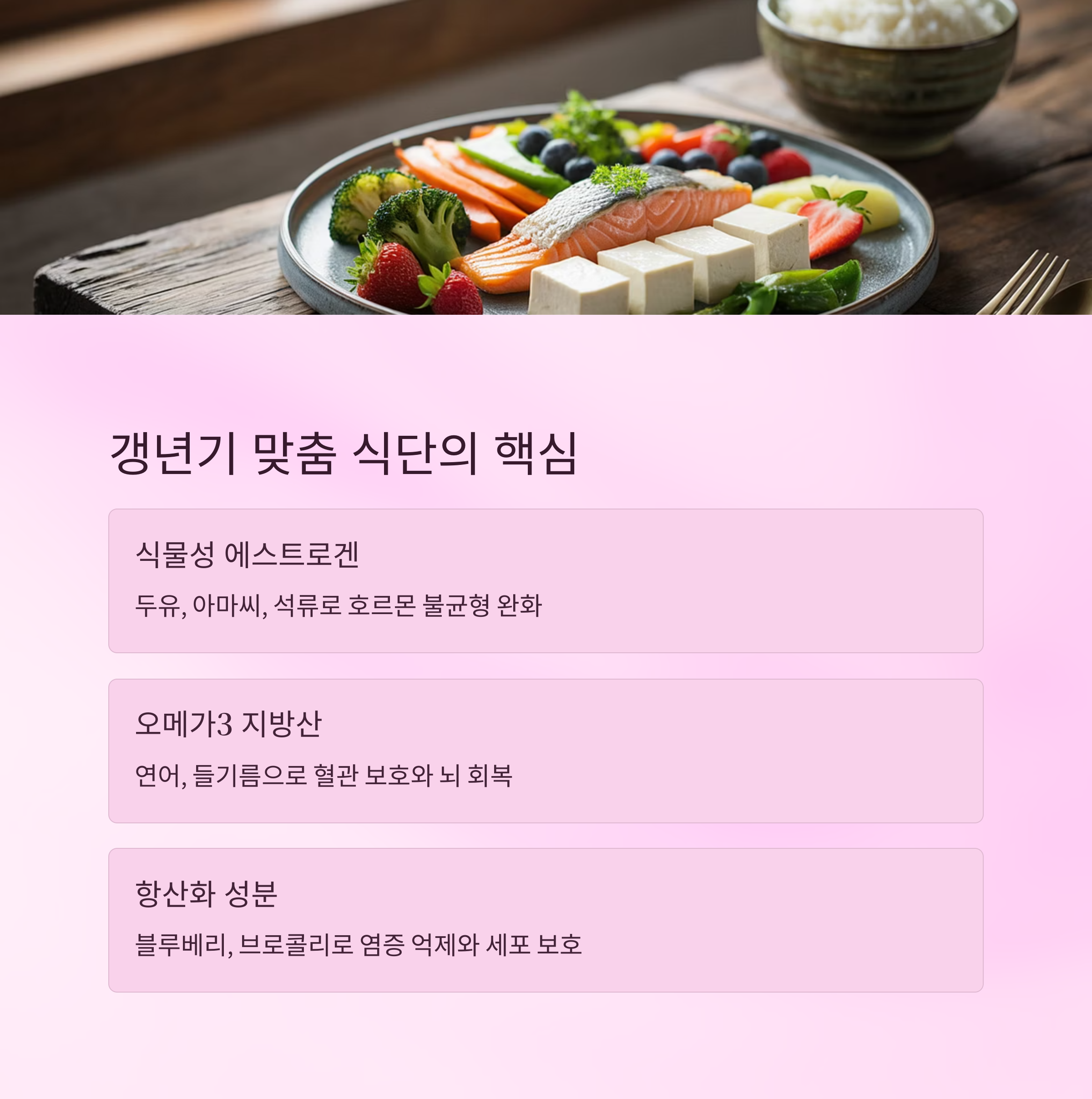 스텝 2: 갱년기 증상 완화를 위한 루틴 식단과 기능성 보완