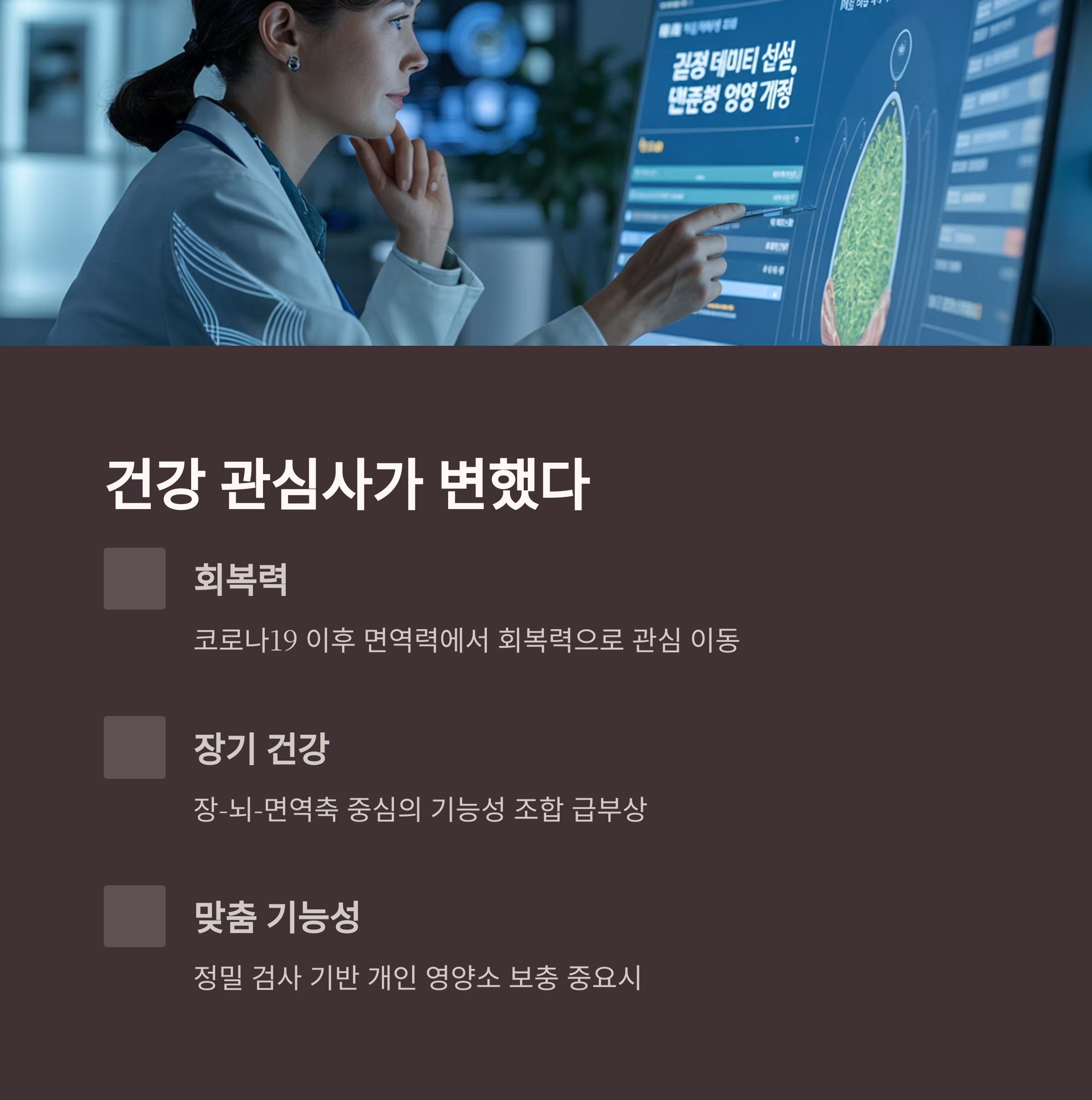 면역력 중심에서 ‘회복력’, ‘장기 건강’, ‘감정 안정’, ‘맞춤 기능성’ 중심으로 이동했습니다