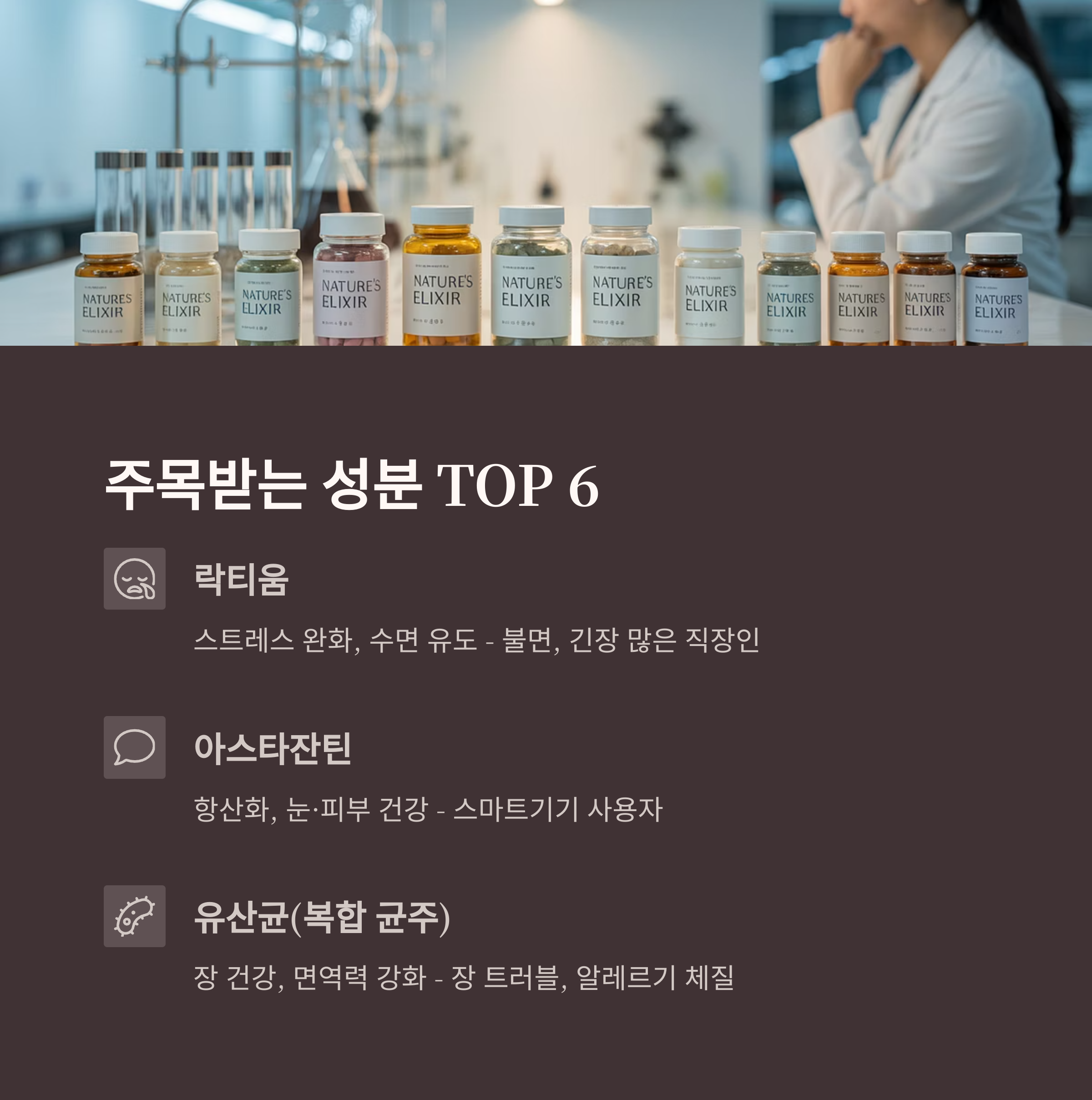 눈에 띄는 변화는 ‘기분 안정과 뇌 기능’ 관련 성분이 대중화되고 있다는 점입니다