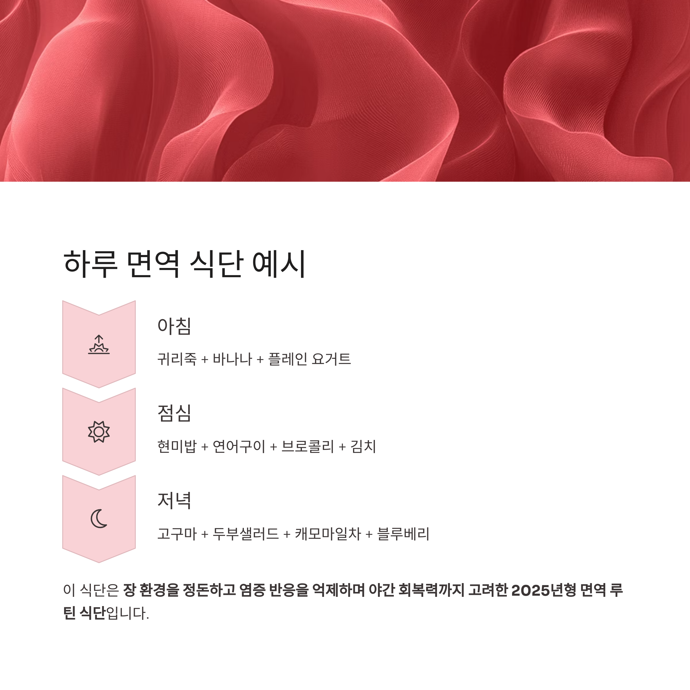 야간 회복력까지 고려한 2025년형 면역 루틴 식단입니다