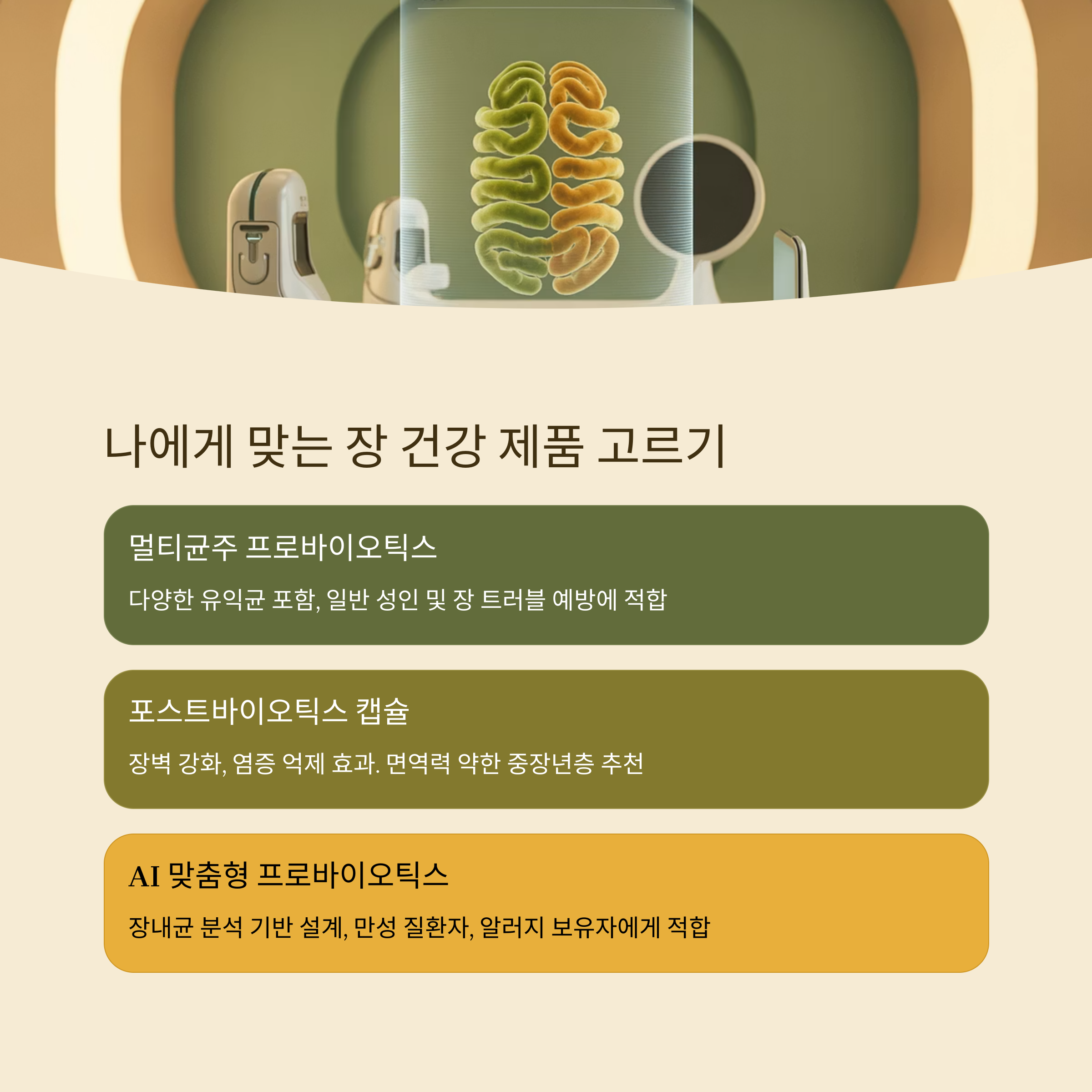 | 포스트바이오틱스 | 발효추출물, 장내 대사물질 | 항염·장벽 강화 작용 |