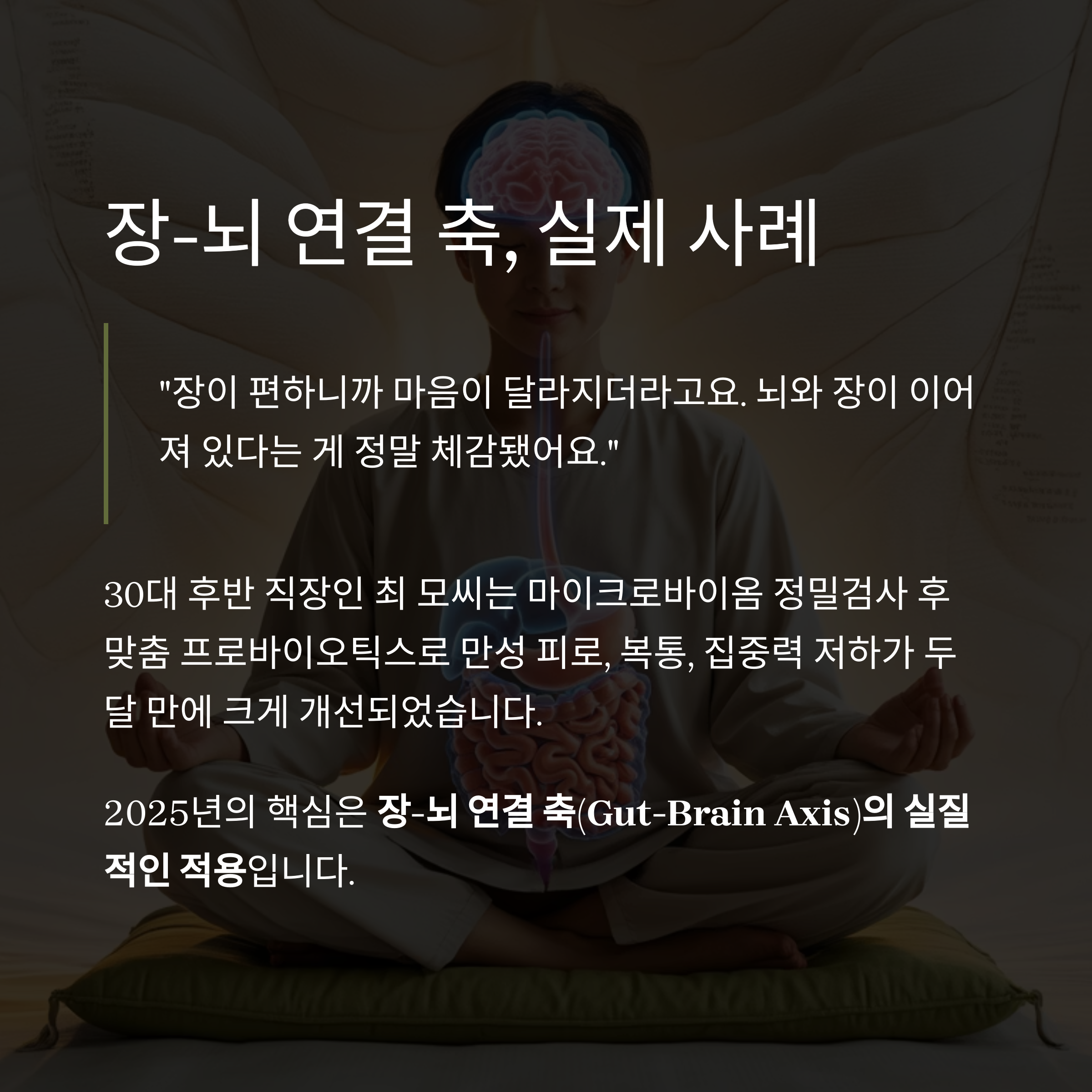 2025년의 핵심은 바로 장-뇌 연결 축(Gut-Brain Axis)의 실질적인 적용입니다