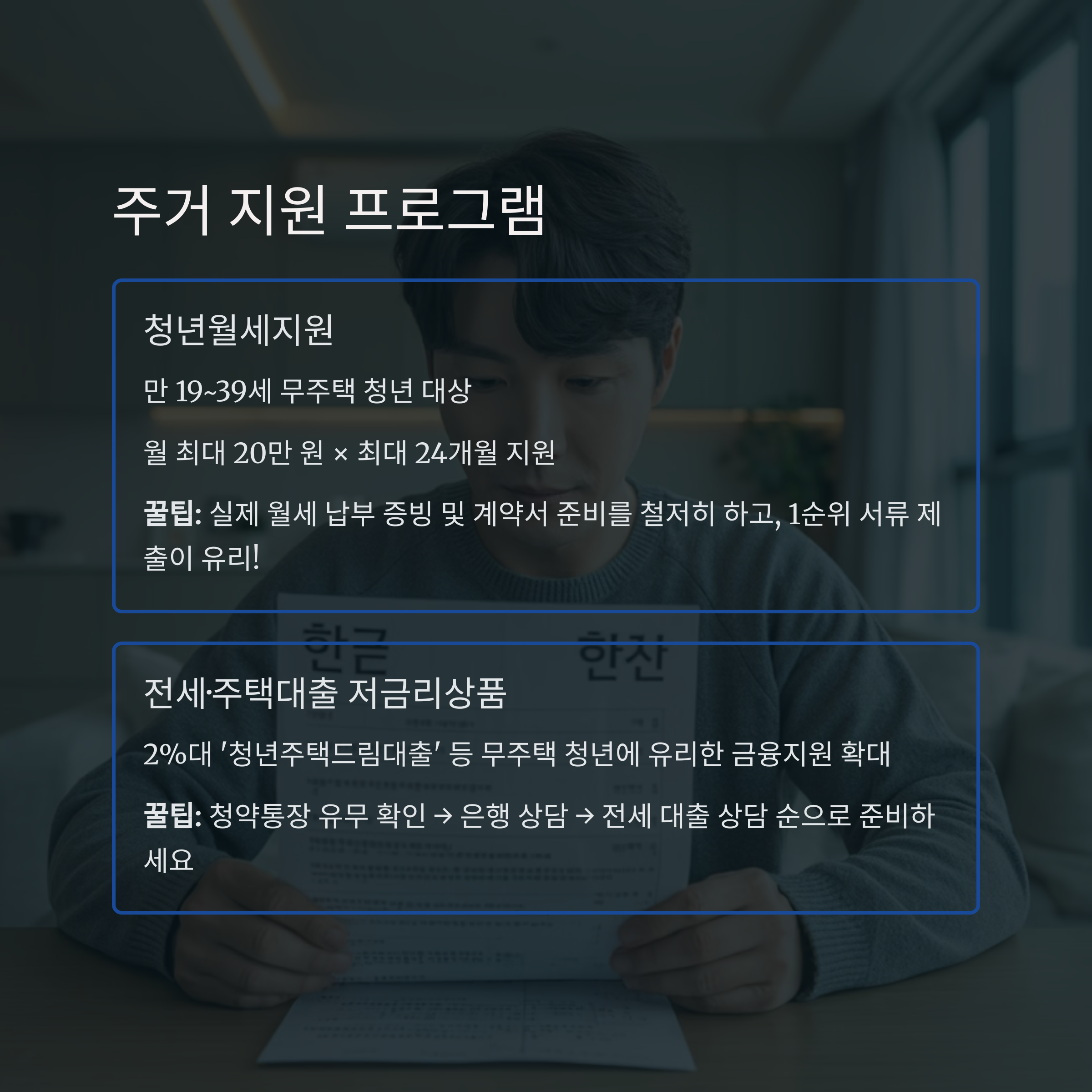 | 주거 | 월세지원 | 증빙자료 철저 준비 후 1순위 신청 |