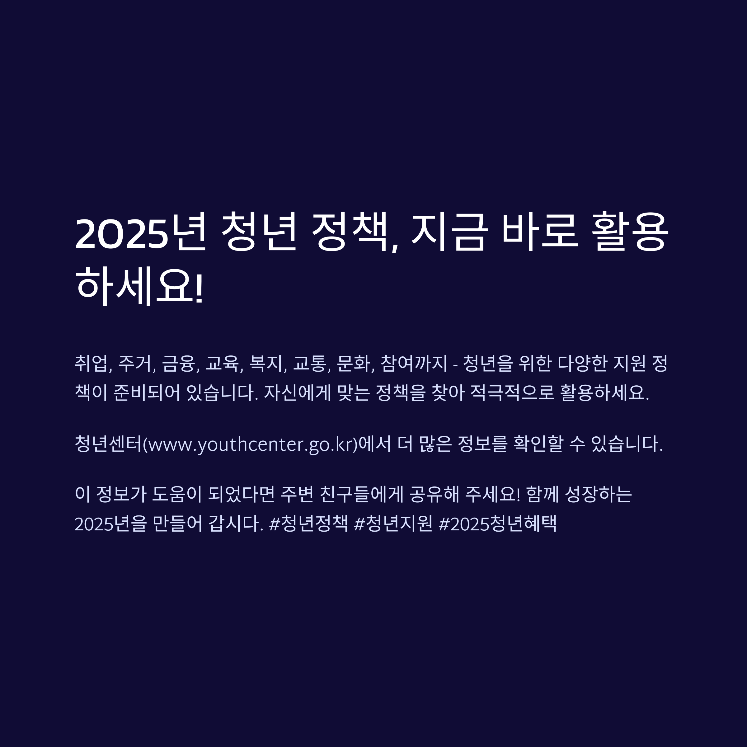 2025년, 다양한 정부·지자체 청년 정책이 취업, 주거, 금융, 교육, 복지, 교통, 문화, 참여 분야에서 종합적으로 강화되었습니다. 청년이라면 꼭 알아야 할 핵심 정책을 쉽게 정리했습니다.