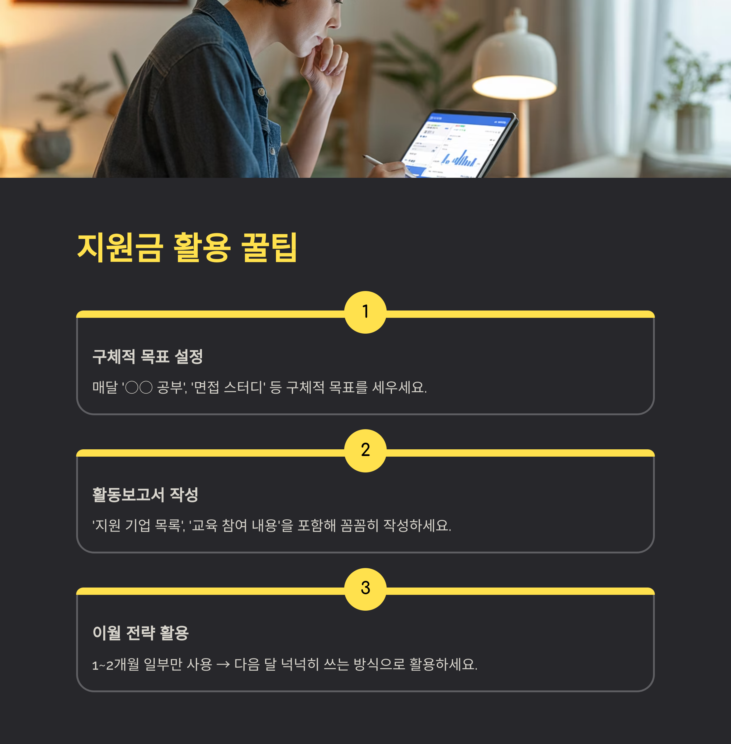 | 활용 계획 | 매달 ‘○○ 공부’, ‘면접 스터디’ 등 구체적 목표 세우기 |