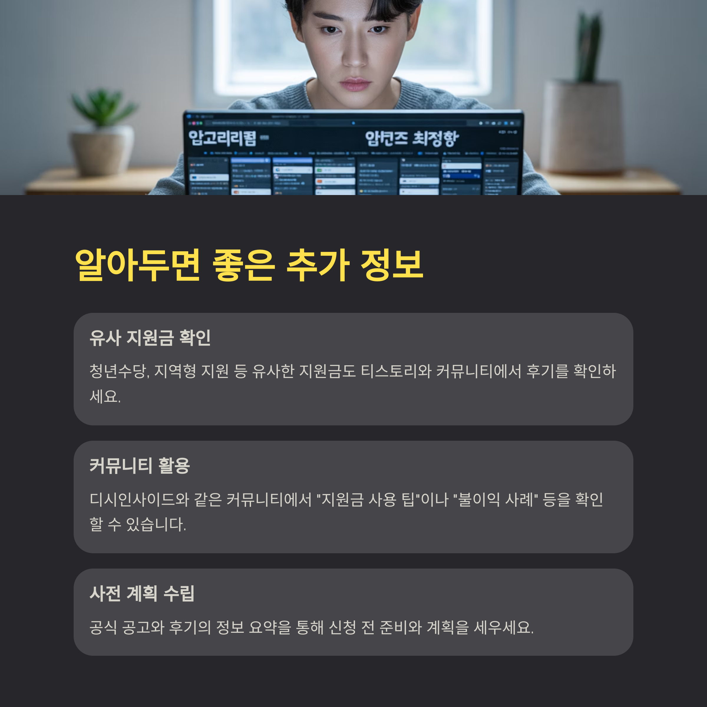 - 디시인사이드와 같은 커뮤니티에서도 “지원금 사용 팁”이나 “불이익 사례” 등을 확인할 수 있습니다 (view2777 님의 블로그).
