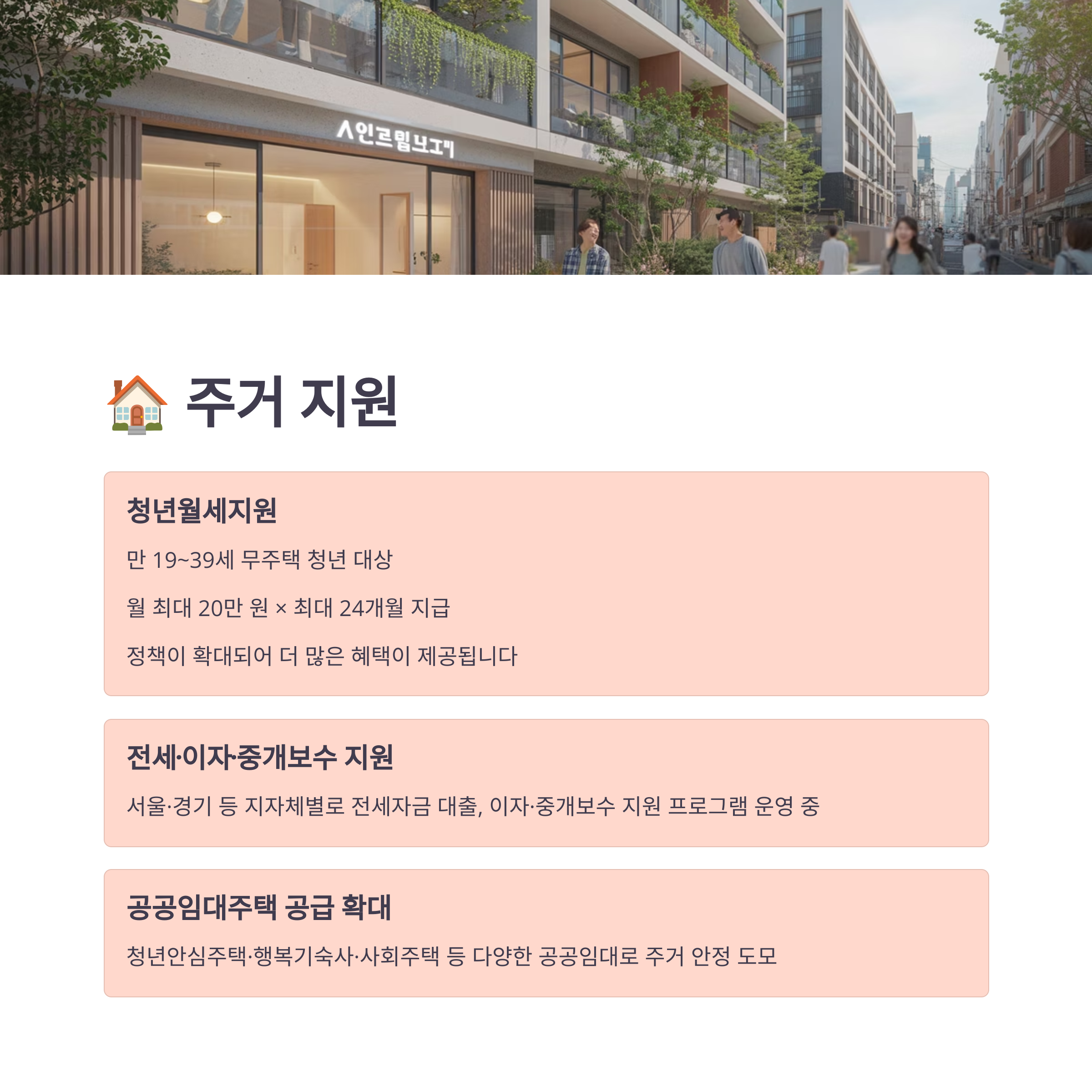 | 주거 | 월세지원 | 19~39세 | 월 20만 원 × 24개월 |