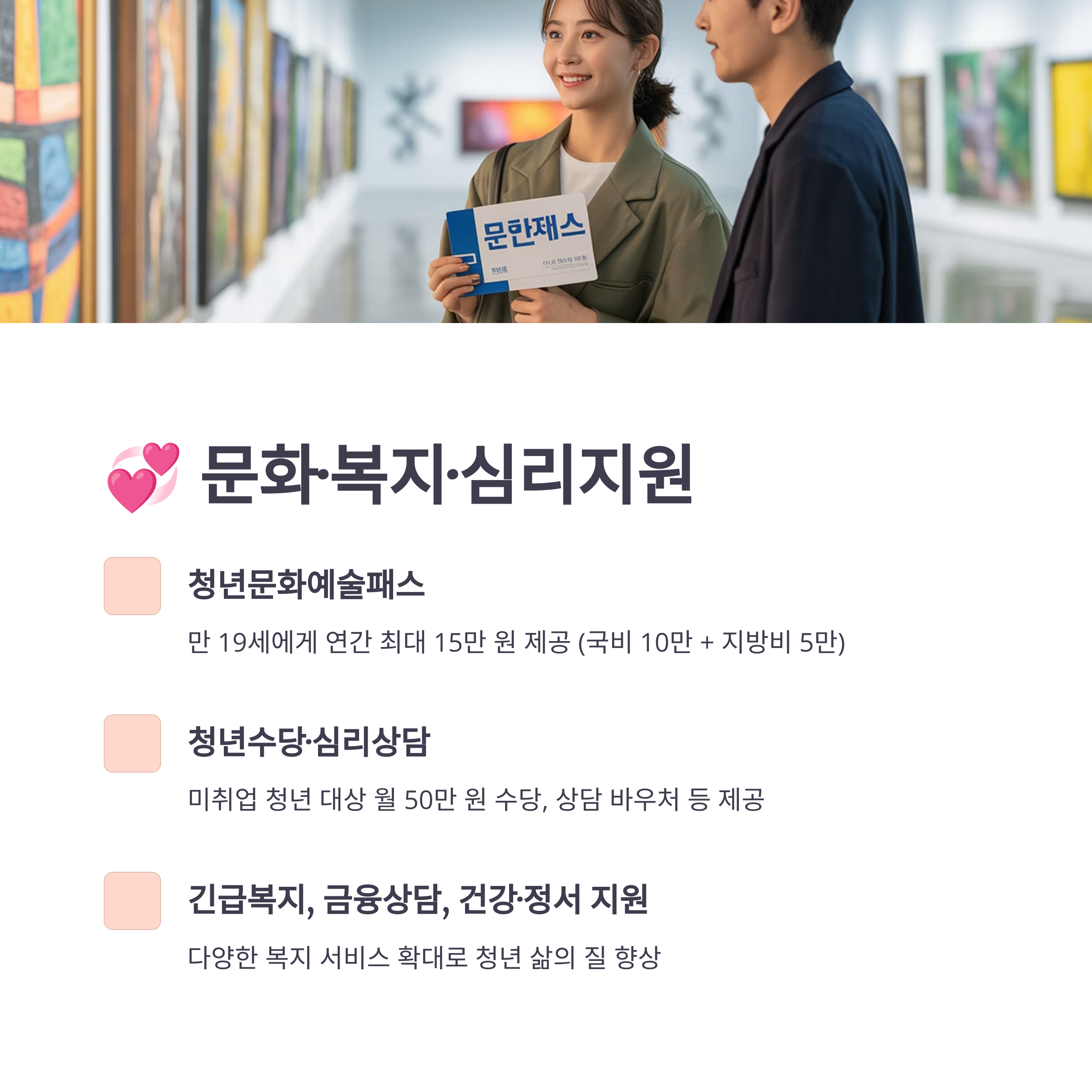 | 문화·복지 | 문화예술패스 | 만 19세 | 연 15만 원 지원 |