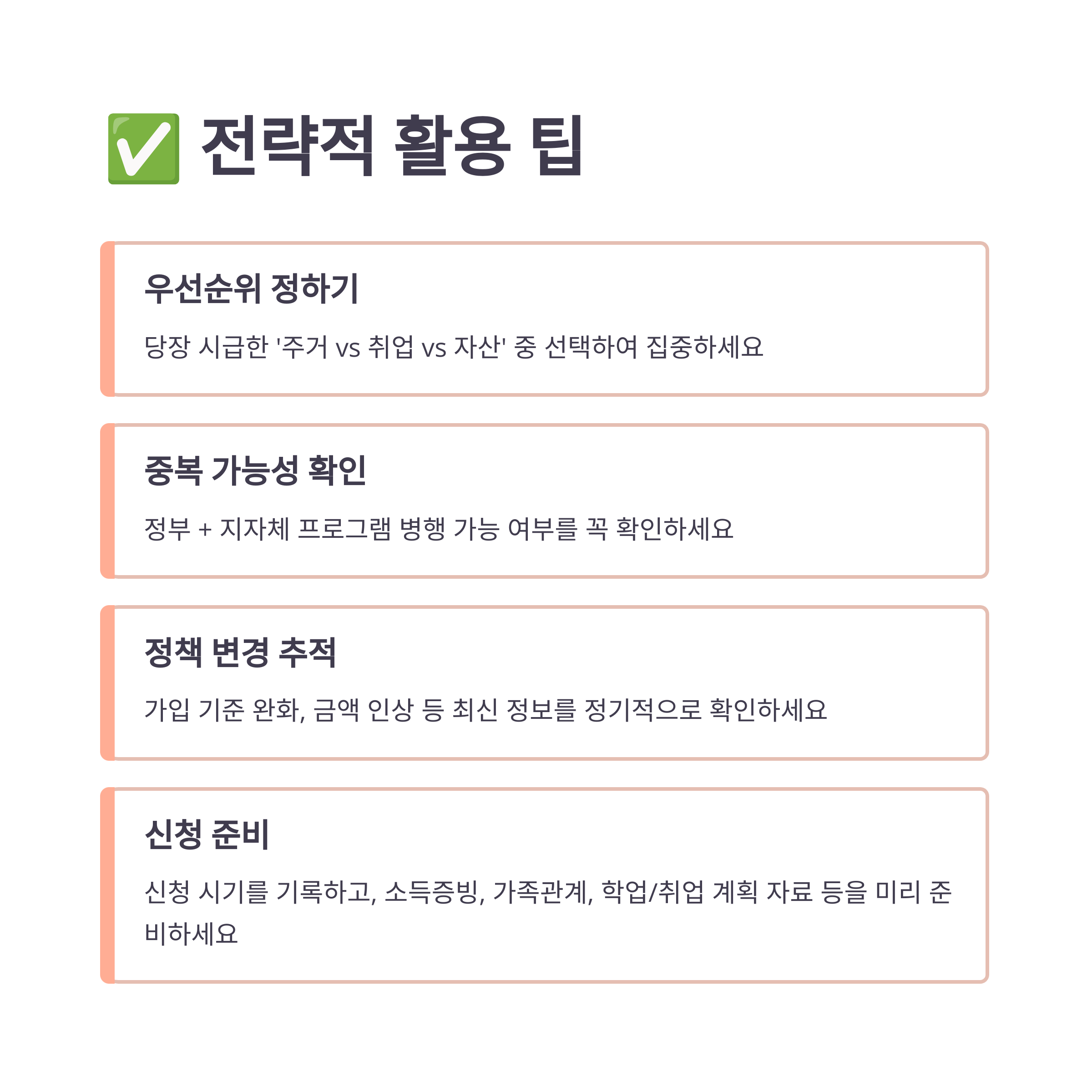 - 우선순위 정하기: 당장 시급한 ‘주거 vs 취업 vs 자산’ 중 선택
