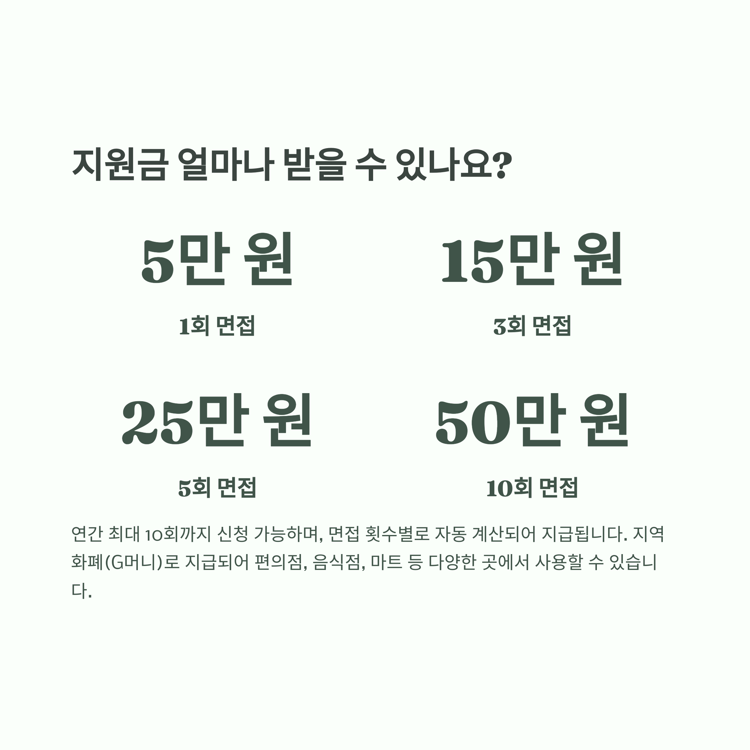 | 지원 금액 | 1회 5만 원 × 최대 10회 = 최대 50만 원 |