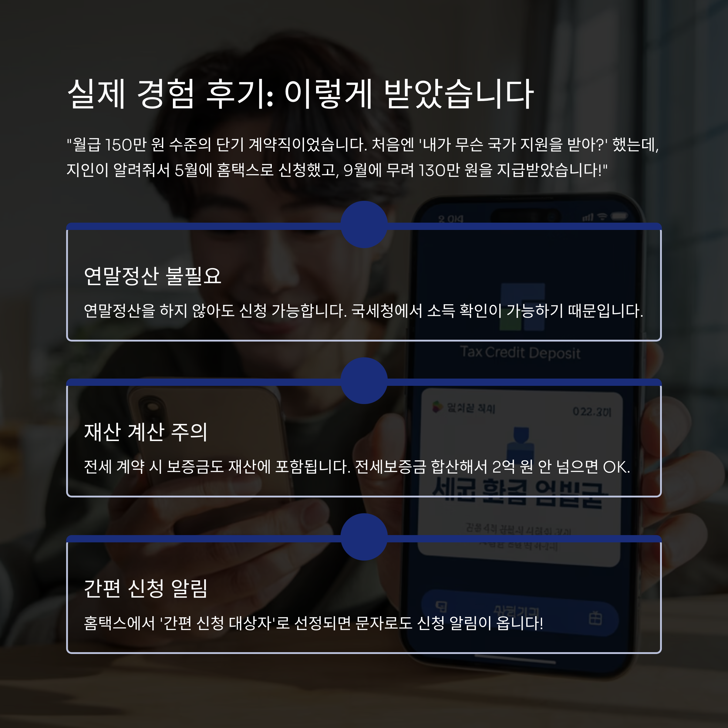 → 전세보증금 합산해서 2억 원 안 넘으면 OK. - 홈택스에서 '간편 신청 대상자'로 선정되면