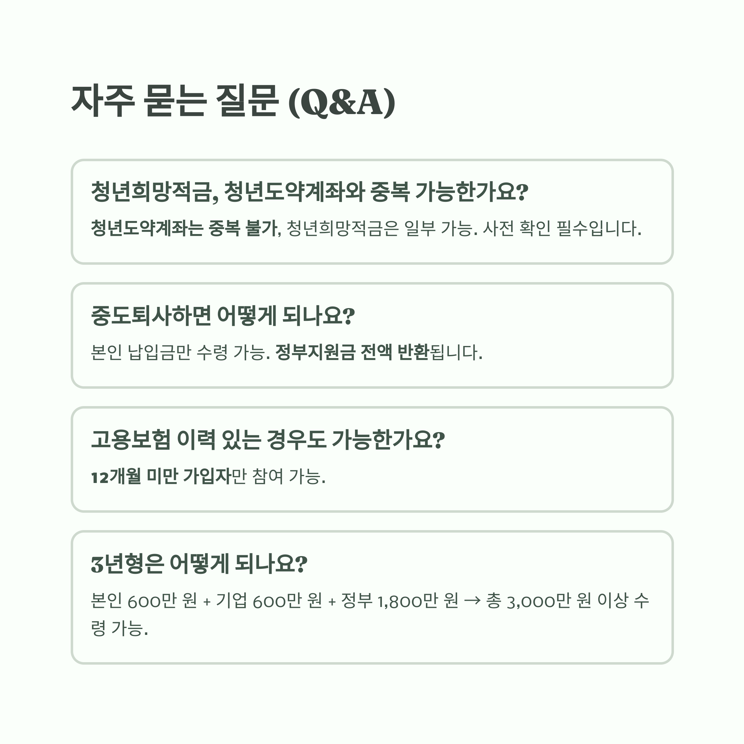 → 본인 600만 원 + 기업 600만 원 + 정부 1,800만 원 → 총 3,000만 원 이상 수령 가능.