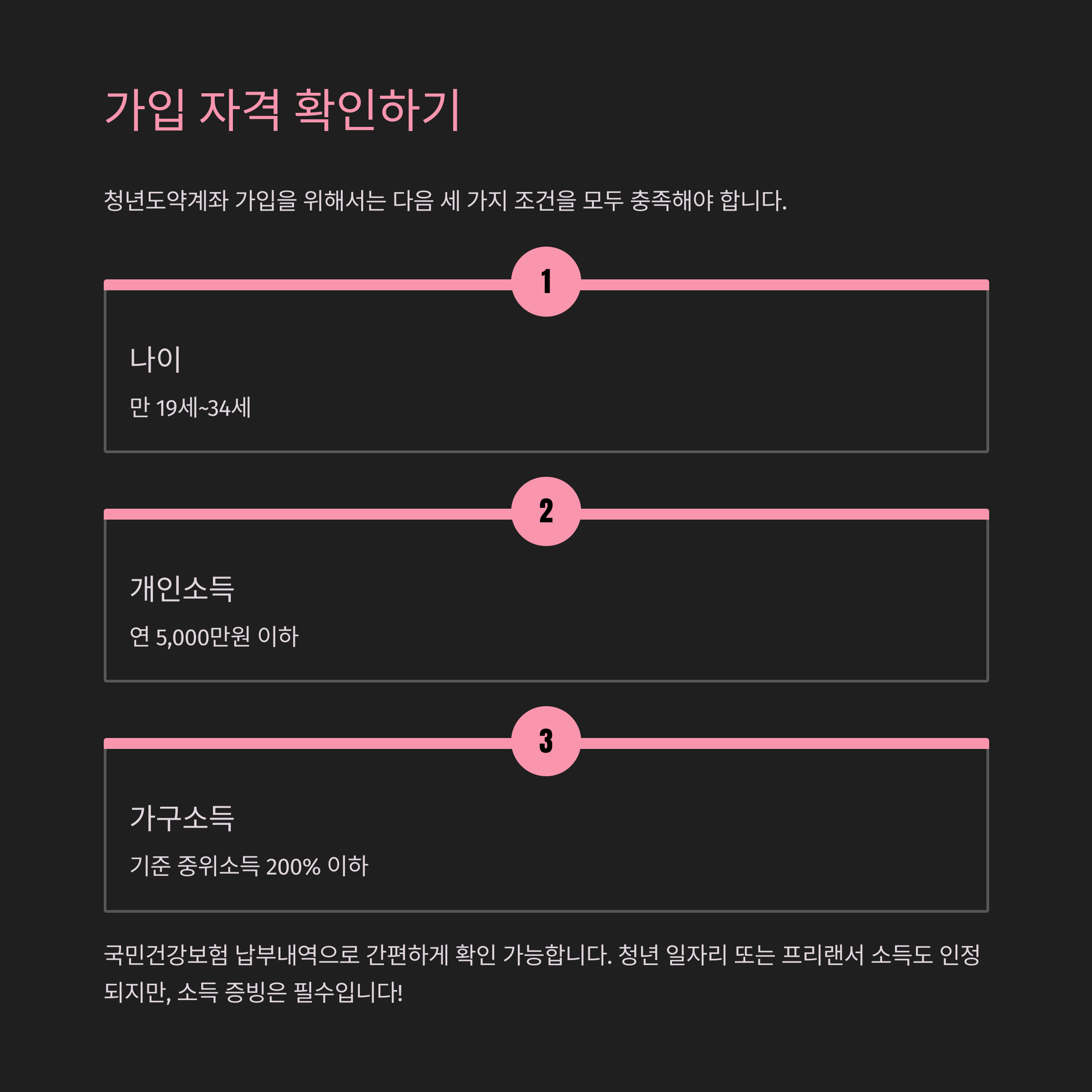 가입 조건은 아래 3가지로 요약됩니다: