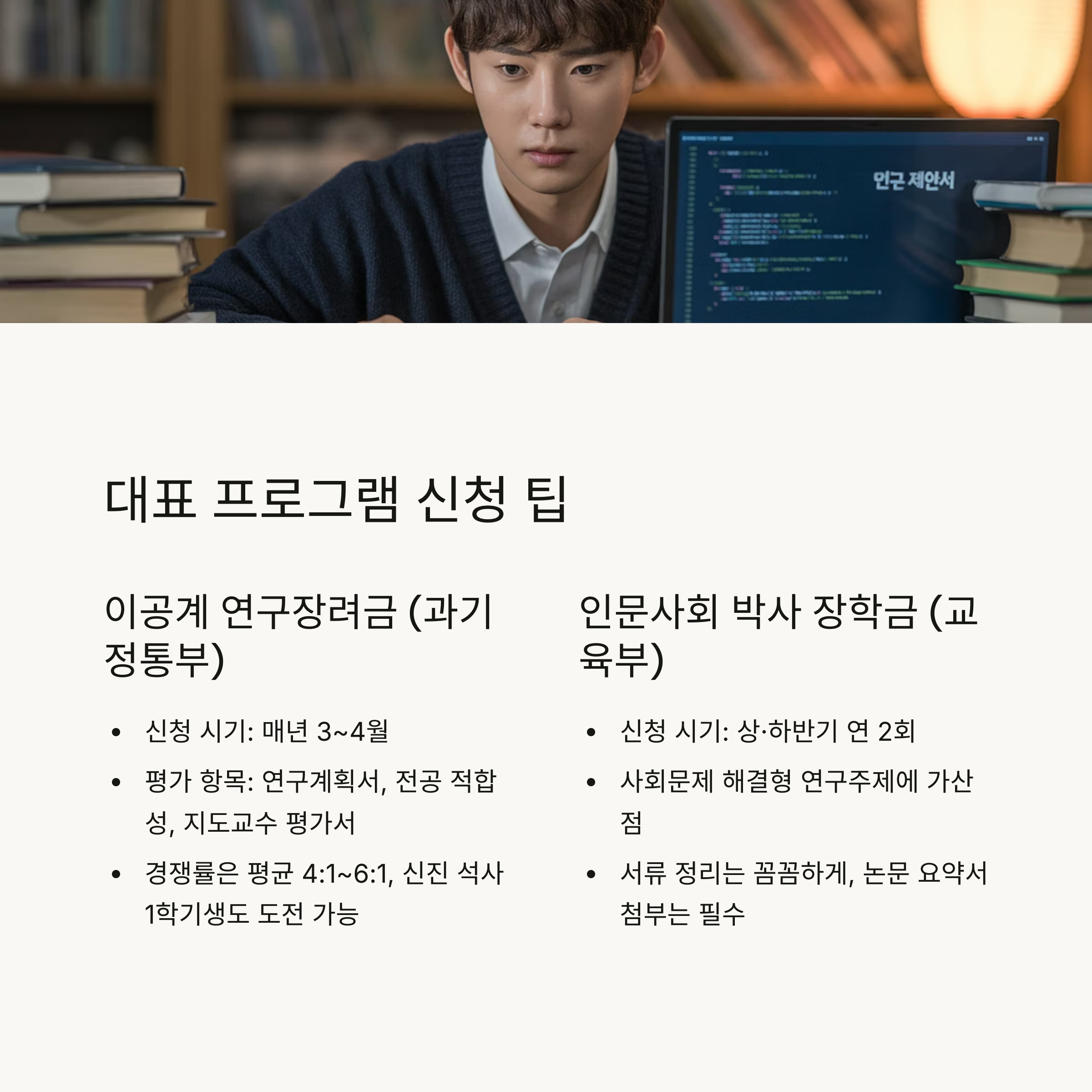 | 인문사회계열 연구장려금 | 인문사회계열 박사과정 | 월 80만~120만 원 | 교육부 |