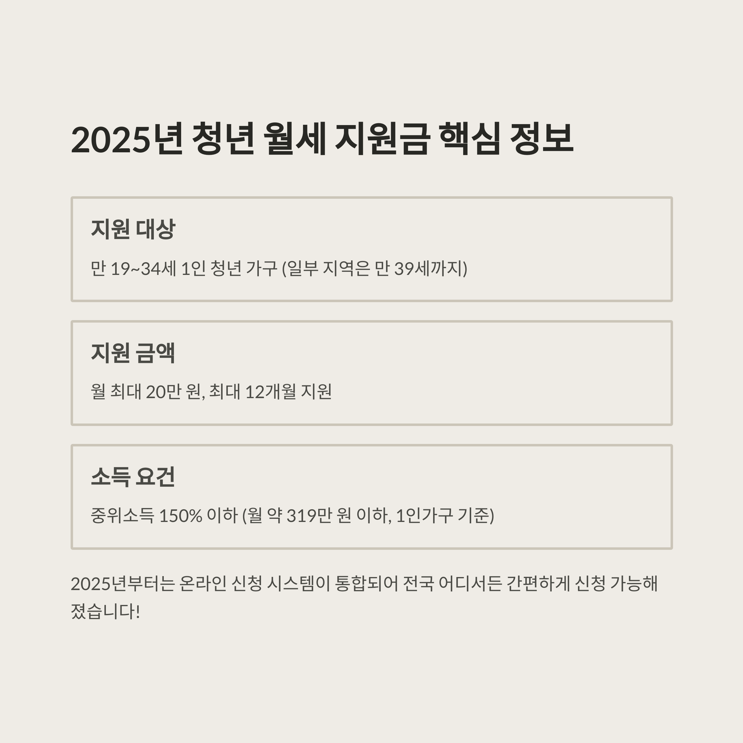 🔹 2025년 청년 월세 지원금 요약