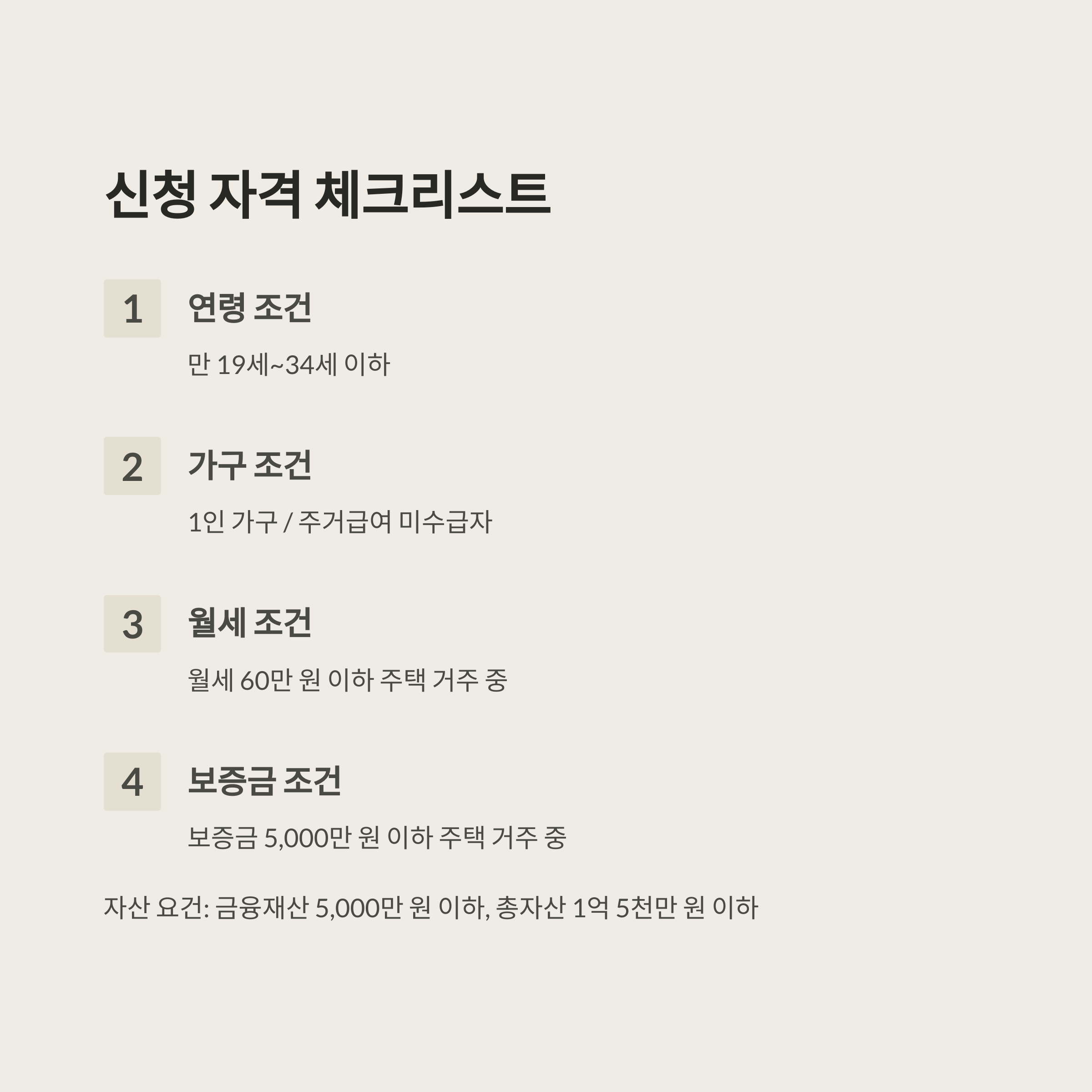 자산요건 금융재산 5,000만 원 이하, 총자산 1억 5천만 원 이하