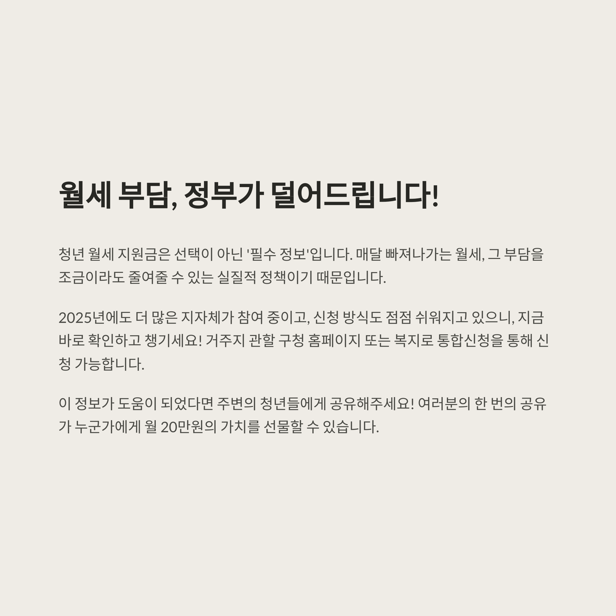 **청년 월세 지원금은 선택이 아닌 '필수 정보'**입니다.