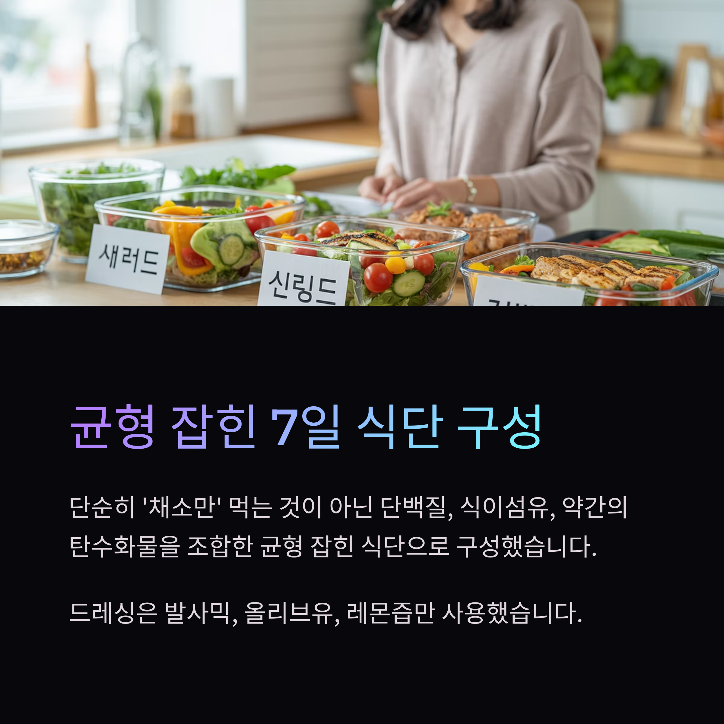 균형 잡힌 샐러드 구성으로 7일을 계획했습니다.