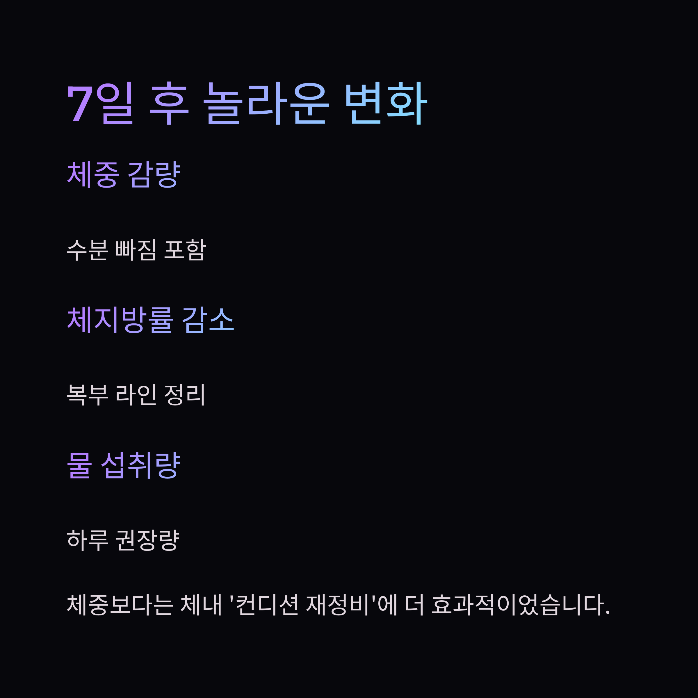 STEP 3 : 7일 후 체중과 컨디션, 무엇이 달라졌을까?
